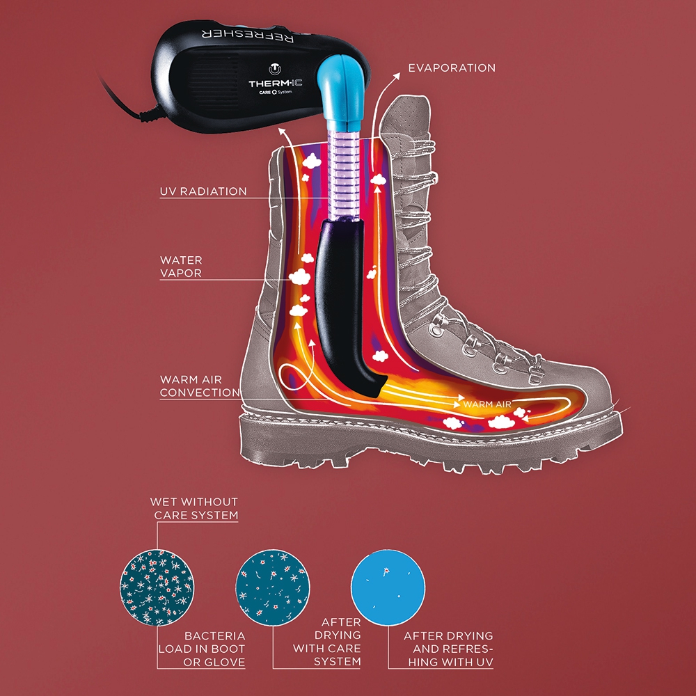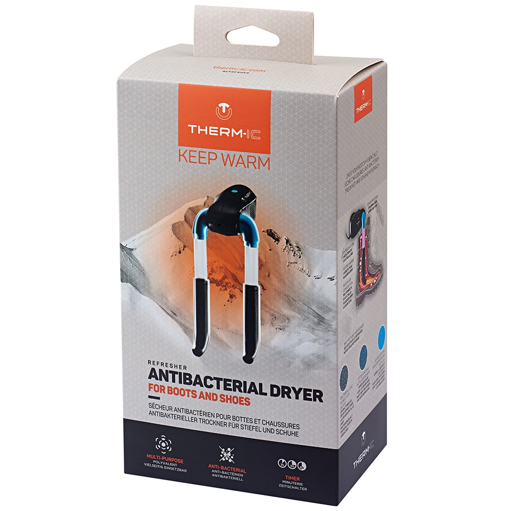 Therm-IC Refresher to zaawansowana suszarka do obuwia i rękawiczek. Pozwala nie tylko szybko osuszyć, ale również nagrzać każdego rodzaju buty jak i zapobiec rozmnażaniu się w nich bakterii. Innowacyjny system działania i przemyślana konstrukcja czyni z suszarki Therm-IC Refresher jedno z najbardziej zaawansowancych urządzeń tego typu.