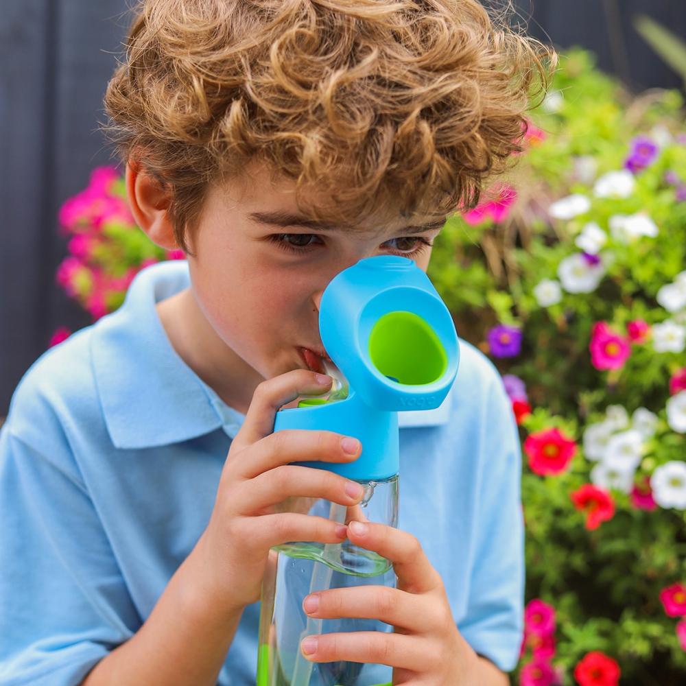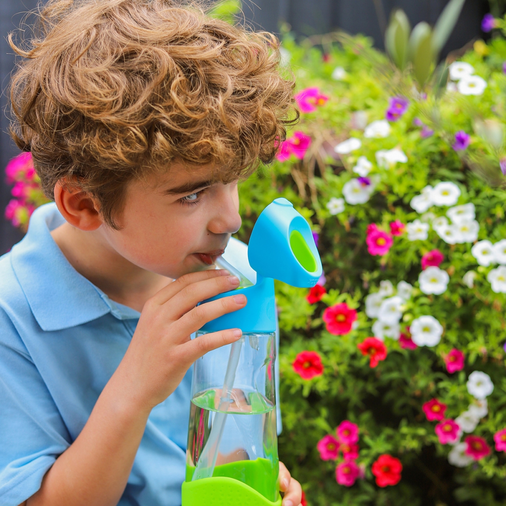 Zastosowanie w butelce słomki znacząco podnosi komfort picia, szczególnie w przypadku najmłodszych użytkowników. Dzięki takiemu rozwiązaniu z produktu mogą korzystać już dzieci od około 9. miesiąca życia, ponieważ picie nie wymaga przechylania butelki ani dużej siły ssania. Słomka ułatwia naturalne i wygodne pobieranie płynów, co sprzyja samodzielności dziecka oraz wspiera naukę prawidłowych nawyków nawadniania. Ponadto umieszczona fabrycznie pod właściwym kątem słomka, gwarantuje wypicie płynów do samego końca.