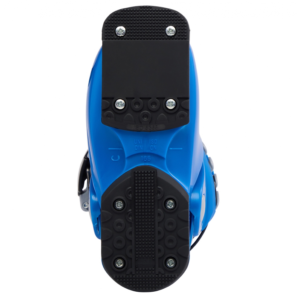 Ułatwieniem ubierania butów narciarskich Lange L-KID jest również jedna regulowana klamra umieszczona z tyłu cholewki buta. Takie rozwiązanie czyni również but bardziej uniwersalnym nie wymuszając utrzymania mocno pochylonej sylwetki co podczas stawiania pierwszych kroków na nartach może być problematyczne i niekomfortowe dla dziecka. Zakres regulacji jest dopasowany tak, aby ucisk buta nie był nadmierny i wspierał naukę jazdy. Flex buta to 30 więc idealny, aby stawiać pierwsze kroki na nartach. Buty narciarskie da dzieci Lange L-KID są również bardzo lekkie gdyż waga jednego buta to ledwie 490 g (roziar 165)