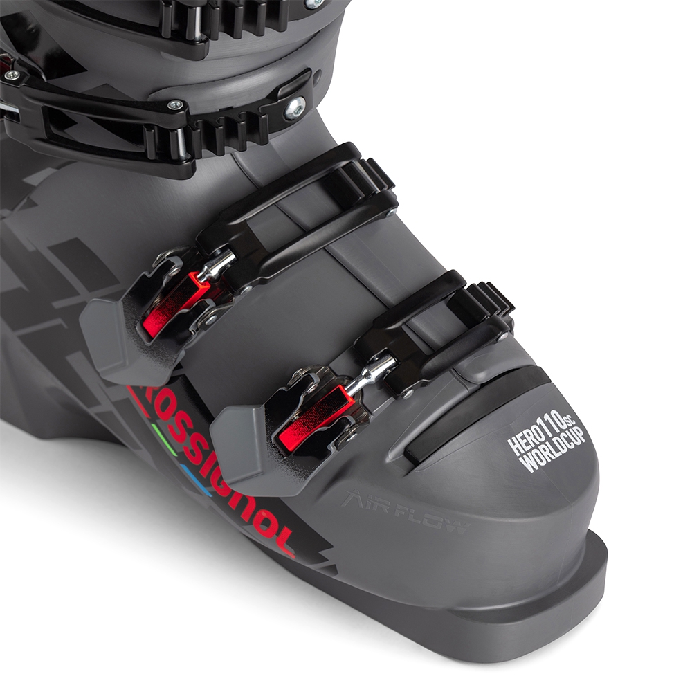 W butach narciarskich Lange RS 110 SC zastosowano szereg regulacji oraz rozwiązań, które zapewniają idealne dopasowanie buta do anatomii stopy młodego zawodnika. Jednym z głównych elementów odpowiadających za komfort i ergonomię jest termo-formowalny but wewnętrzny Pre-Shaped Liner. Jego zaawansowana, trójwymiarowa struktura oraz użycie specjalnie opracowanego tworzywa perfekcyjnie dopasowuje się do stopy doskonale się z nią integrując zapewniając niezwykłą reaktywność i kontrolę. O utrzymanie odpowiedniej pozycji nogi w bucie dbają wysokiej klasy nisko-profilowe klamry. Wykonane są z wysokiej klasy aluminium nadając im niezwykle dużą wytrzymałość. Niezwykle istotną rolę w kwestii odpowiedniego dopasowania butów narciarskich odgrywa tzw. mikro oraz makro-regulacja klamer. Makro-regulacja daje możliwość zmiany położenia drabinek, o które zahaczamy klamrę. Mikro-regulacja natomiast pozwala na idealne dopasowanie długości samej klamry dając możliwość precyzyjnego ustalenia siły zapięcia. W górnej części cholewki butów narciarskich Rossignol Hero World Cup 110 SC znajduje się również rzep o szerokości 40 mm, który stabilizuje pozycję nogi powyżej kostki poprawiając dopasowanie i transmisję mocy.