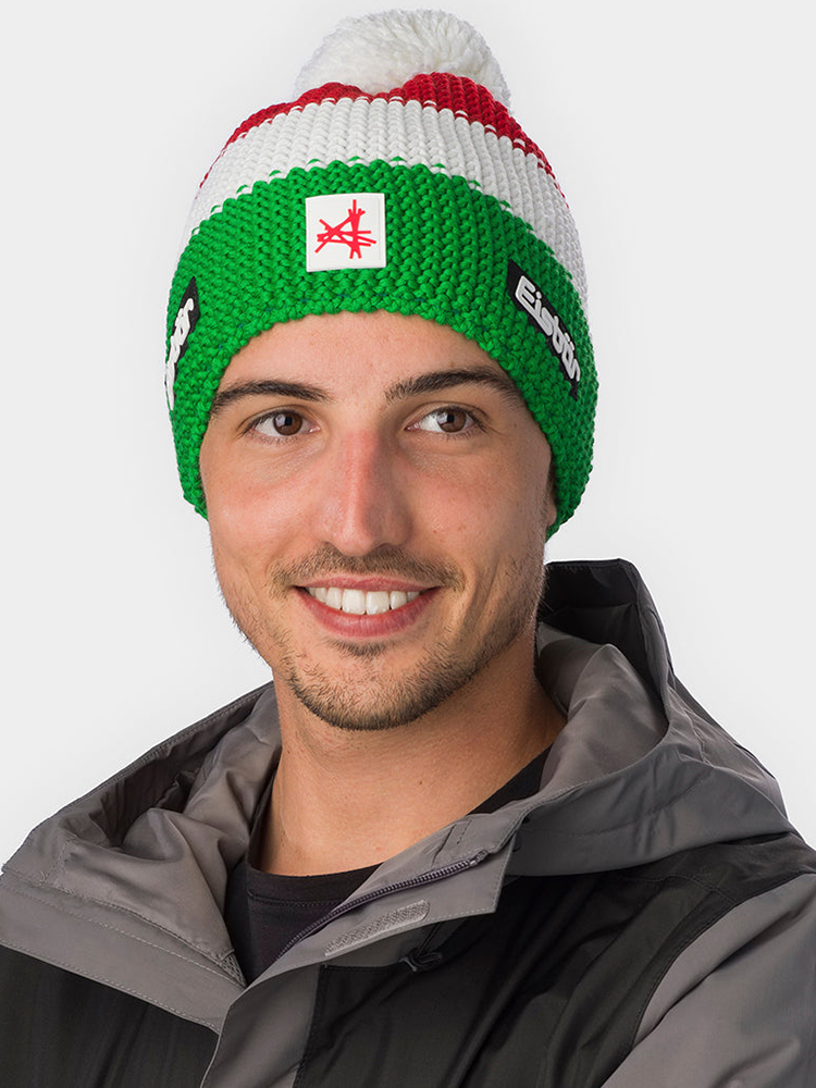 Model Eisbär Star Pompon SKA wyróżnia się eleganckim designem, który nawiązuje do barw narodowych Włoch. Z pomponem na szczycie oraz charakterystycznymi trzema paskami w kolorach narodowych Włoch, czapka ma modny i sportowy wygląd. Dodatkowo, wewnętrzna opaska wykonana z przytulnego polaru pochodzącego z recyklingu zapewnia ciepło uszom, a materiał nie podrażnia skóry i jest antyalergiczny. Czapka pochodzi z kolekcji Eisbär SKA (Ski Austria) cieszącej się szczególną popularnością wśród miłośników narciarstwa. Wyróżnia się umieszczonym na czapce oficjalnym znakiem Austriackiej Reprezentacji Narciarskiej Ski Austria oraz dwoma logotypami Eisbär.