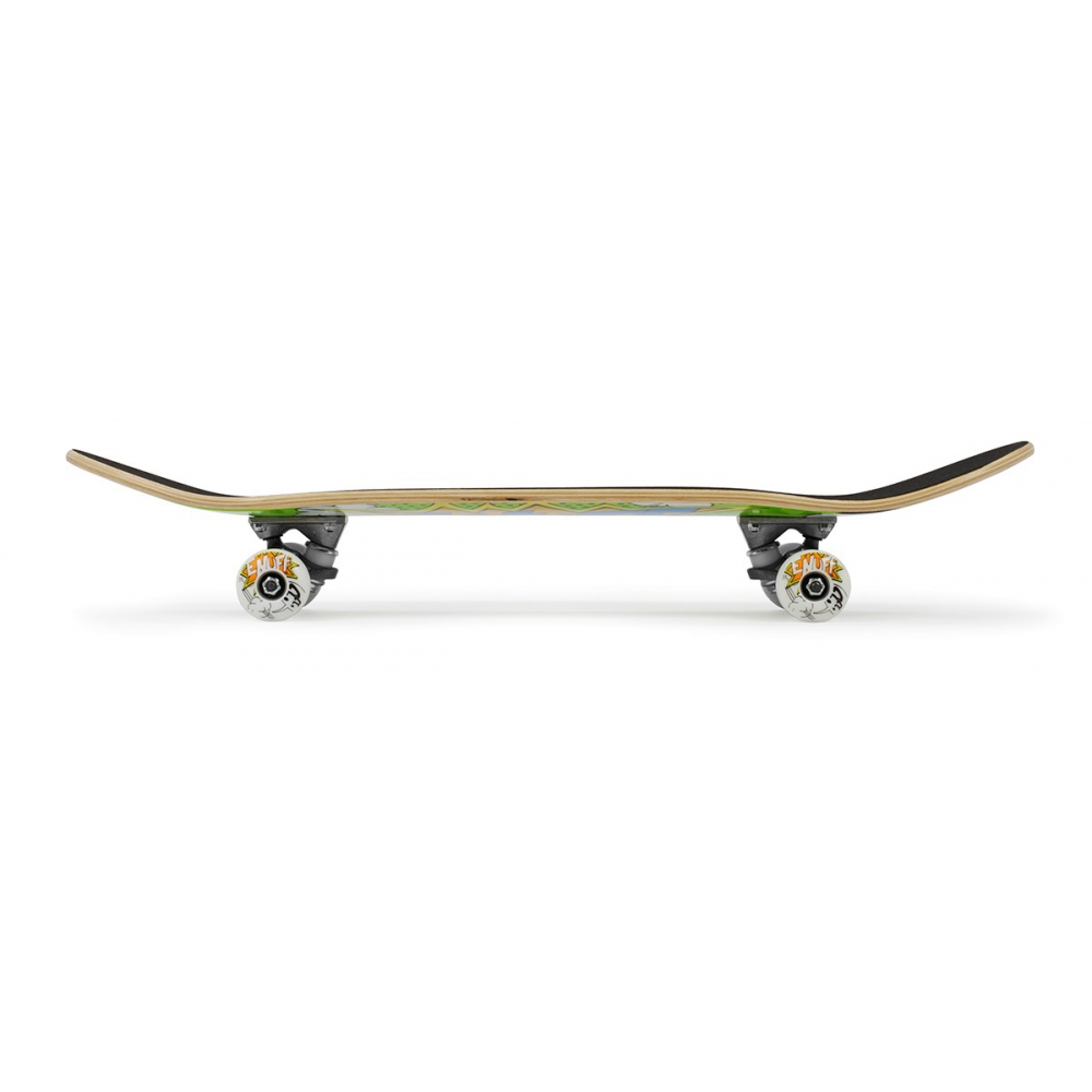 Enuff POW Mini to deskorolka stworzona z myślą o młodszych użytkownikach oraz osobach, które chcą rozpocząć naukę jazdy na bardziej poręcznej i łatwiejszej w kontroli desce. Mniejsza szerokość 7.25" sprawia, że deskorolka szybciej reaguje na ruchy i jest bardziej zwrotna, co ułatwia stawianie pierwszych kroków na desce. Podstawę deskorolki stanowi deck wykonany z 7 warstw drewna klonowego, dzięki czemu całość jest wytrzymała i dobrze znosi intensywne użytkowanie oraz pierwsze upadki. Konstrukcja zapewnia również odpowiednią sprężystość i elastyczność, co przekłada się na lepsze czucie deski podczas jazdy. Model Enuff POW Mini 7.25" posiada średni concave, czyli umiarkowane wyprofilowanie boków, które daje naturalne i przewidywalne prowadzenie, szczególnie pomocne przy nauce podstaw. Wyraźnie zaznaczone nose i tail ułatwiają kontrolę nad deską i wykonywanie pierwszych manewrów. Na górze znajduje się fabrycznie nałożony grip, czyli szorstka warstwa zwiększająca przyczepność, którą w razie zużycia można bez problemu wymienić.