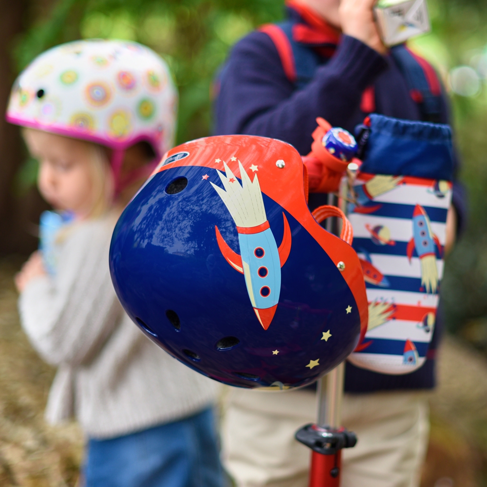 Dzwonek występuje w wielu wzorach i kolorach idealnie komponując się z barwnymi hulajnogami i akcesoriami Micro. Każdy dzwonek pakowany jest w zgrabne pudełeczko wraz z pasującą kolorystycznie do dzwonka zawieszką - bransoletką "Become a Micro friend". Dzwonek Micro to idealny pomysł na drobny upominek.