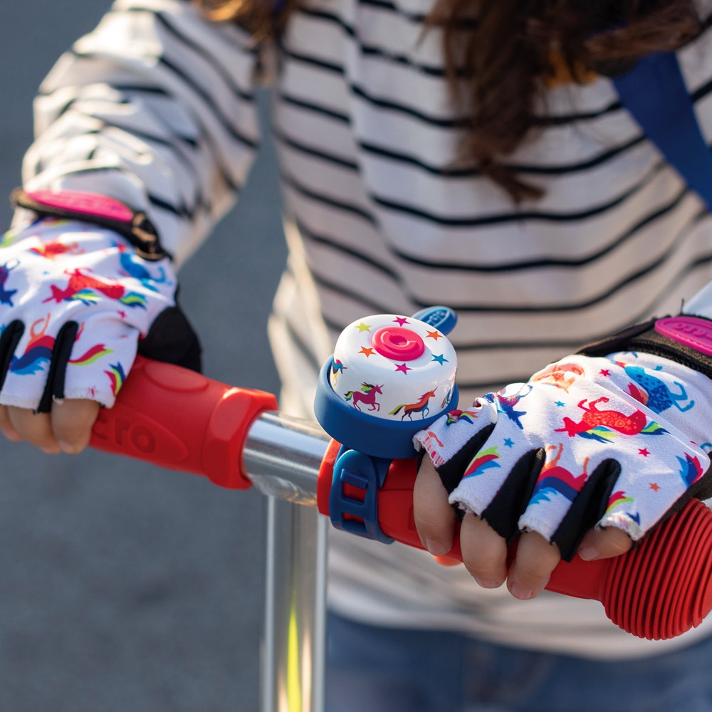 Dzwonek występuje w wielu wzorach i kolorach idealnie komponując się z barwnymi hulajnogami i akcesoriami Micro. Każdy dzwonek pakowany jest w zgrabne pudełeczko wraz z pasującą kolorystycznie do dzwonka zawieszką - bransoletką "Become a Micro friend". Dzwonek Micro to idealny pomysł na drobny upominek.