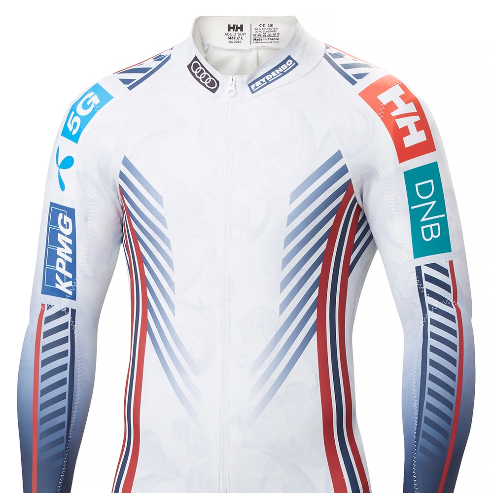 Helly Hansen World Cup Speed Suit 2 to profesjonalna guma narciarska zaprojektowana do jazdy sportowej, gdzie liczy się aerodynamika, stabilność i powtarzalność ruchów przy bardzo dużych prędkościach. Jednoczęściowa, mocno dopasowana konstrukcja ogranicza opór powietrza i zapobiega falowaniu materiału w trakcie zjazdu, co ułatwia utrzymanie agresywnej pozycji na trasie. Rękawy wyposażono w praktyczne pętle na kciuki, które zapobiegają podciąganiu się materiału podczas jazdy i zakładania ochraniaczy – dzięki temu rękawy zawsze pozostają na swoim miejscu, a sylwetka zachowuje aerodynamiczny kształt. Dodatkowo kombinezon posiada wszyte miękkie ochraniacze na przedramiona i uda, które chronią przed uderzeniami o bramki i zmniejszają ryzyko otarć. Ochraniacze można w razie potrzeby łatwo wyjąć, co pozwala dopasować strój do charakteru treningu lub startu. Materiał jest wiatroszczelny i bardzo oddychający, dzięki czemu pomaga utrzymać komfort termiczny nawet podczas intensywnych przejazdów.