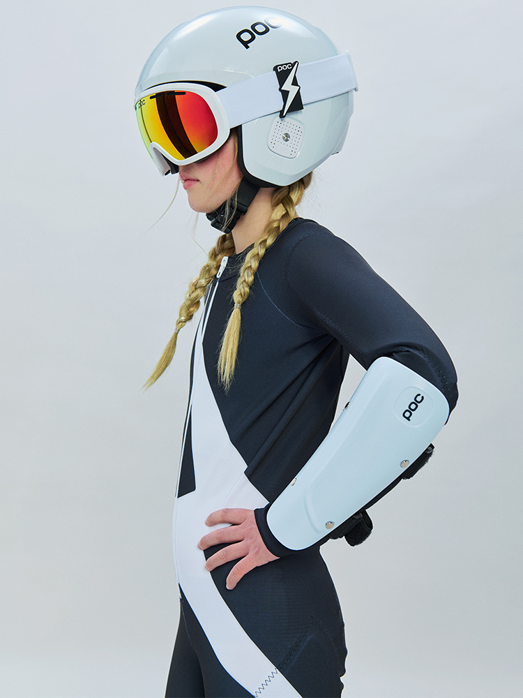 Aby zwiększyć bezpieczeństwo kombinezon został wyposażony w protektory na rękach i nogach, aby bez obaw wjeżdżać odważniej w bramki i wydzierać cenne milisekundy. Wykonane zostały one z elastycznego i jednocześnie bardzo wytrzymałego tworzywa, które pozwala zminimalizować siłę uderzenia zapobiegając siniakom i urazom. Rękawy gumy narciarskiej zakończone są uchwytami na kciuki, aby góra kombinezonu została na miejscu, a nogawki zakończone są specjalnym tworzywem syntetycznym, które zapobiega ześlizgiwaniu się gumy z butów narciarskich. Guma narciarska przeznaczona jest dla młodych zawodników jeżdżących podczas zawodów. Guma narciarska Skin GS junior zyskała akredytację Międzynarodowej Federacji Narciarskiej (FIS). Kolekcja gum narciarskich POC Skin GS JR doskonale kolorystycznie komponuje się z pozostałymi produktami tego producenta tworząc doskonałe wrażenie, które przypadnie do gustu zarówno młodym narciarzom jak i ich rodzicom.