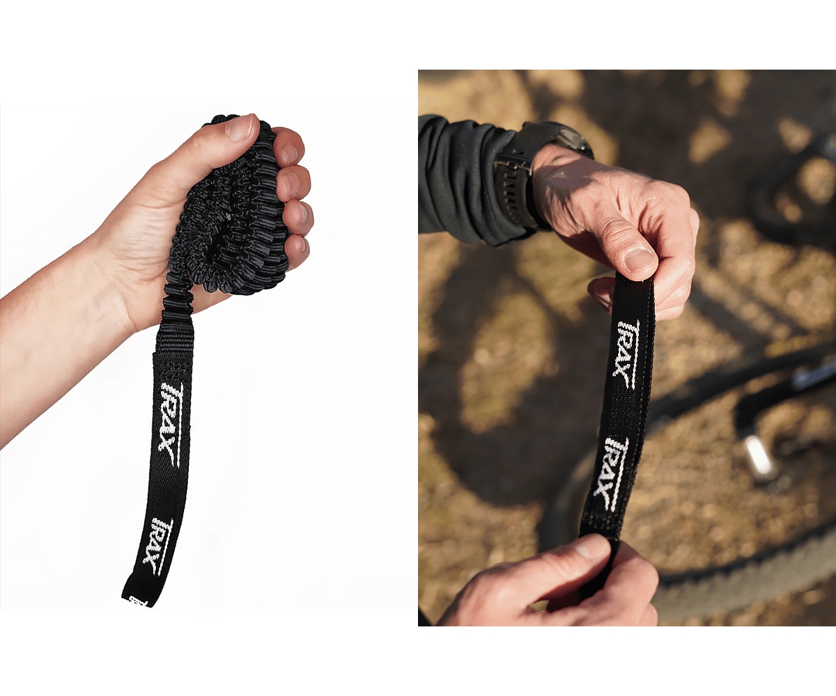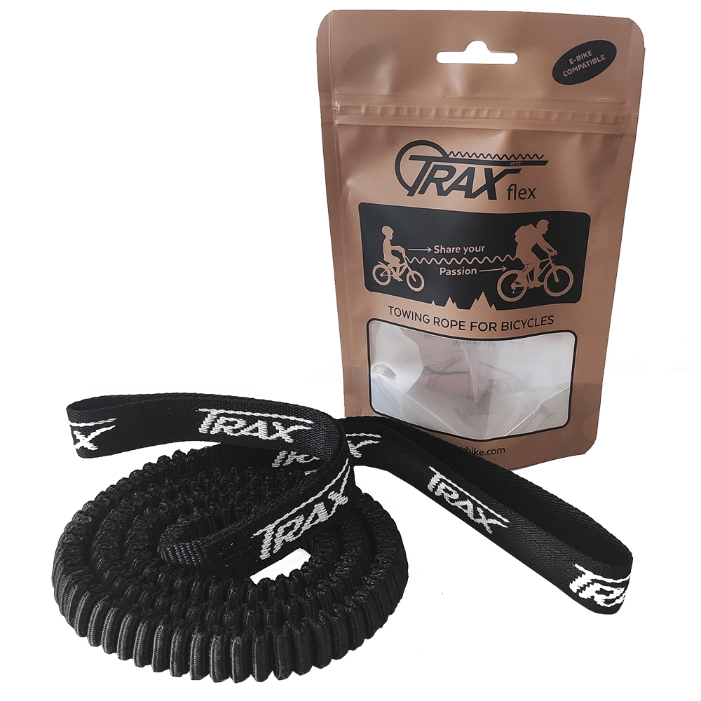 Trax Flex to praktyczny hol rowerowy w formie elastycznej taśmy, który ułatwia wspólne wycieczki Wykonany jest z elastycznej linki bungee, która w spoczynku ma około 1 metra, a podczas jazdy rozciąga się do 2,5 metra, dzięki czemu rowery utrzymują bezpieczny dystans, a szarpnięcia są amortyzowane.