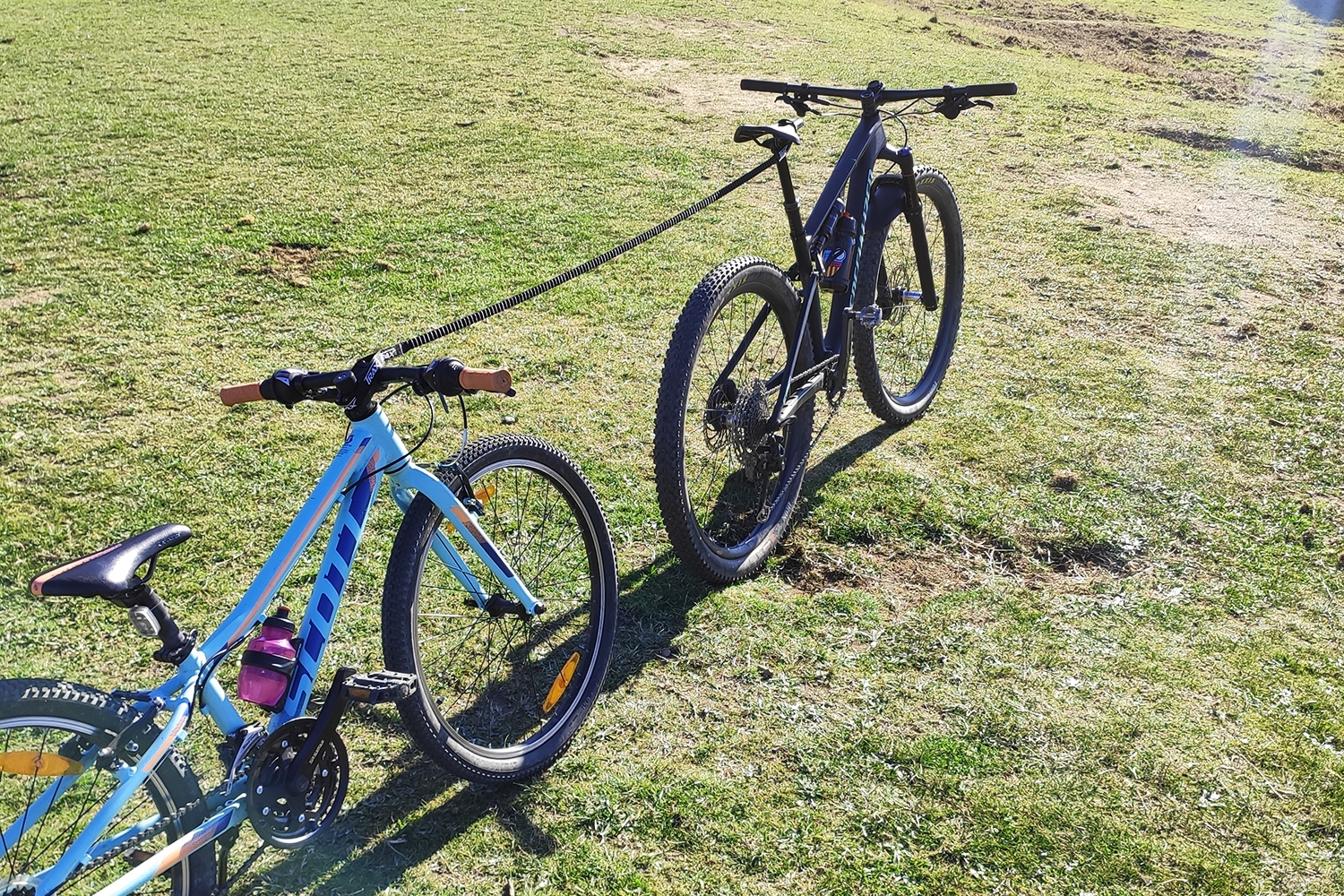 - System mocowania: dwie pętle – do siodła roweru holującego i do kierownicy lub mostka roweru holowanego