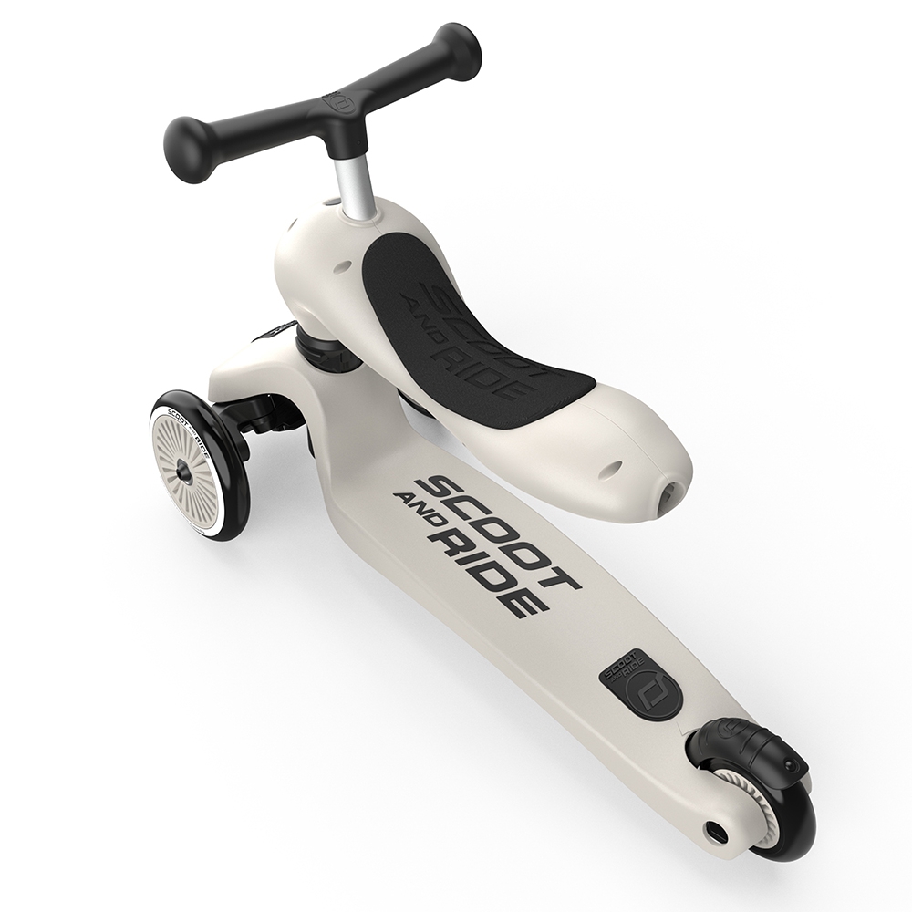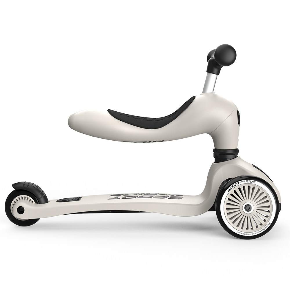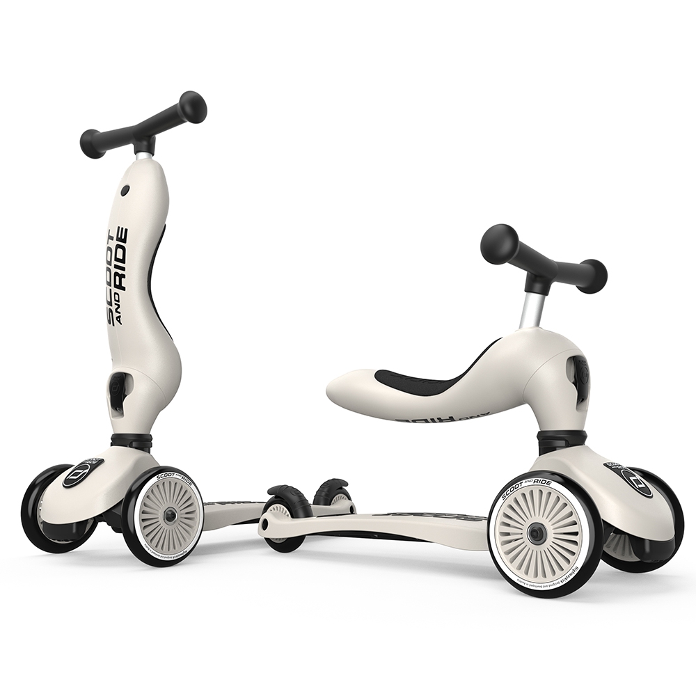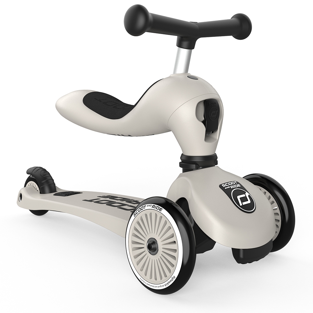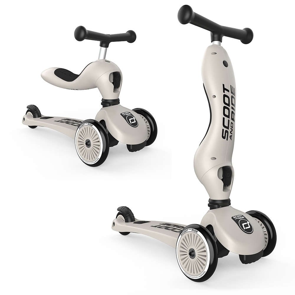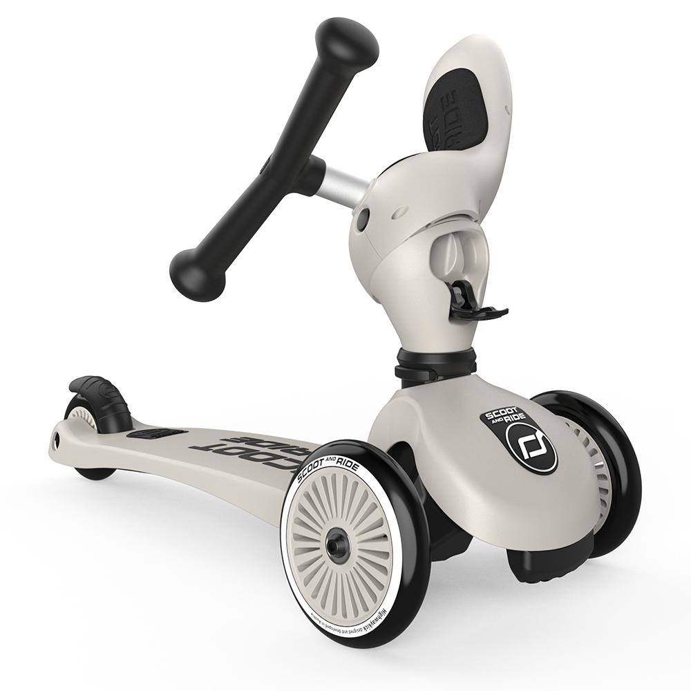 Gdy dziecko już będzie za duże na jeździk, pojazd można łatwo przekształcić w hulajnogę za pomocą jednego przycisku i w ciągu paru sekund. Dzięki temu Highwaykick1 wystarczy do około piątego roku życia i zapewni mnóstwo frajdy. Metamorfozę jeździka w hulajnogę zalecany gdy dziecko jest w wieku ok. 20-24 miesięcy. Zmiana pojazdu w hulajnogę odbywa się bez użycia jakichkolwiek narzędzi. Wystarczy użyć jednego przycisku i obrócić siedzisko w pozycje pionową, następnie przenosimy kierownicę, która montowana jest na wcisk i gotowe. Wysokość kierownicy w hulajnodze regulowana jest 3-stopniowo – rączki kierownicy mogą znajdować się na wysokościach 60, 63 oraz 66 cm. Limit wagowy hulajnogi wynosi 50 kg.