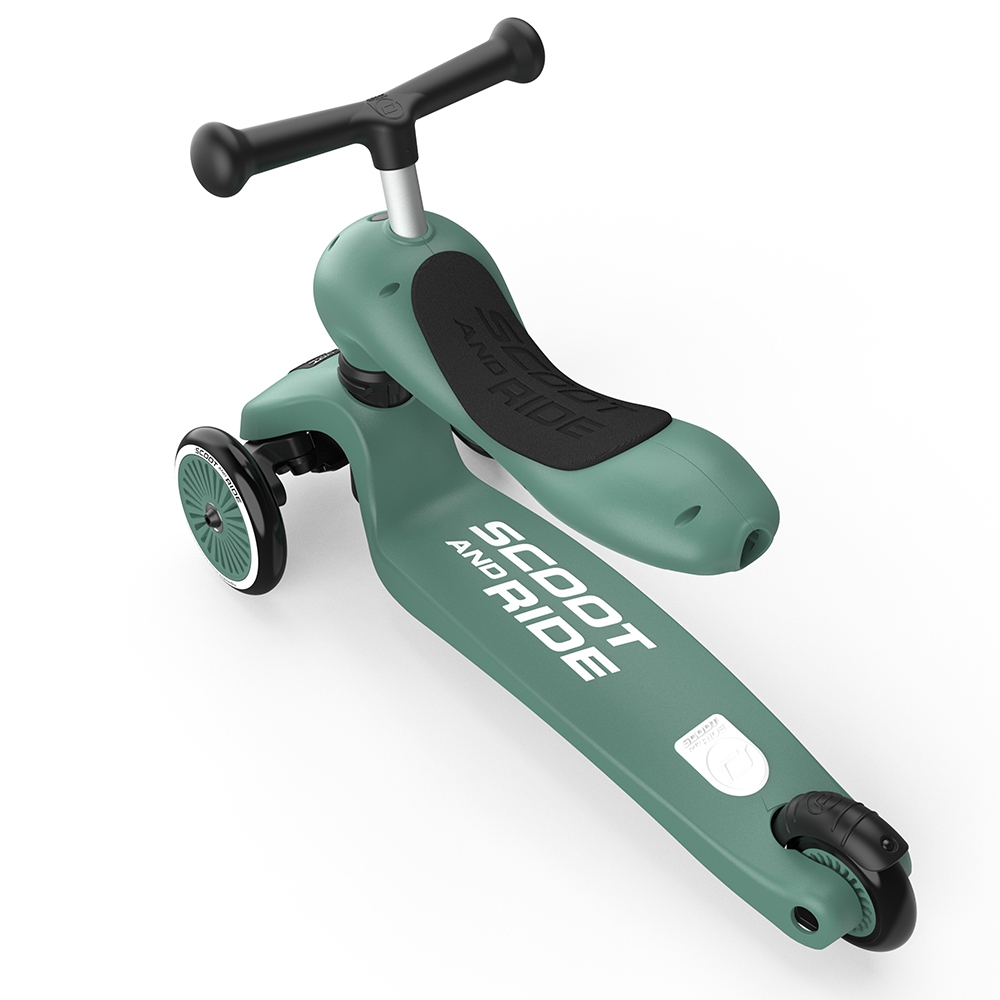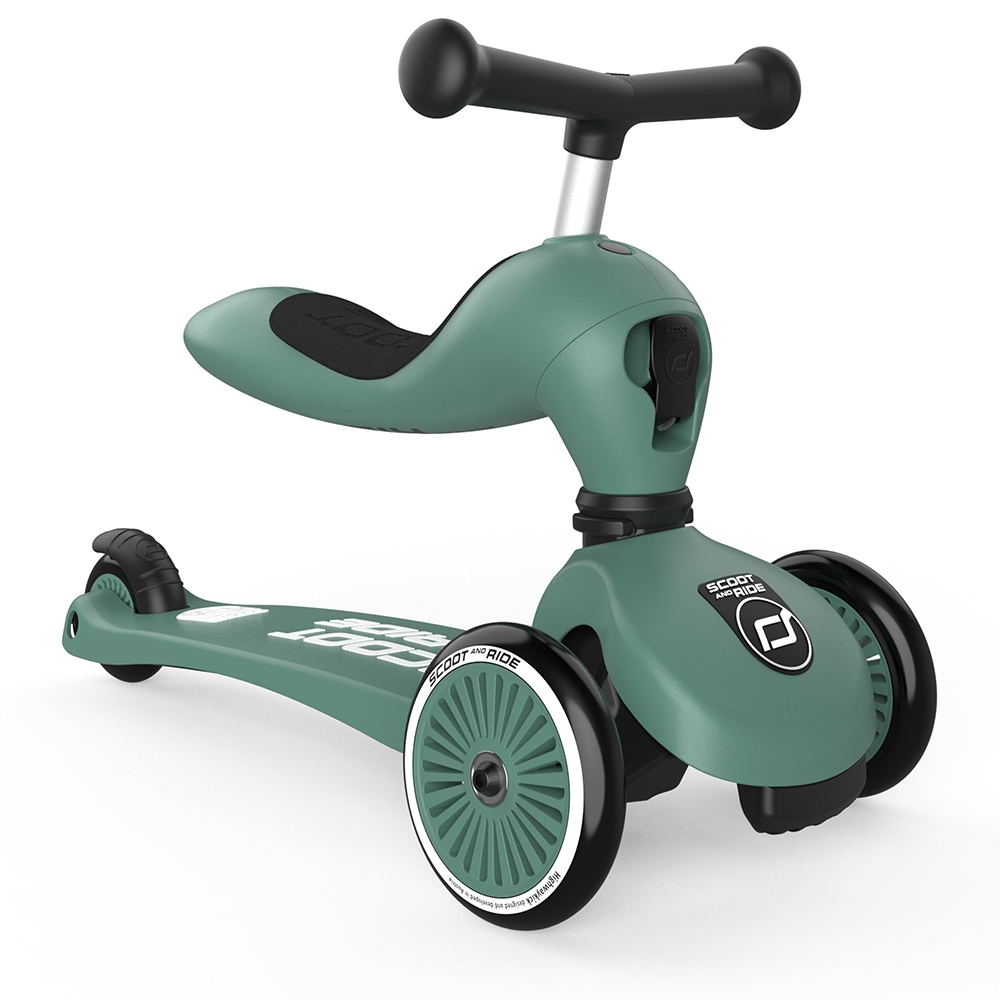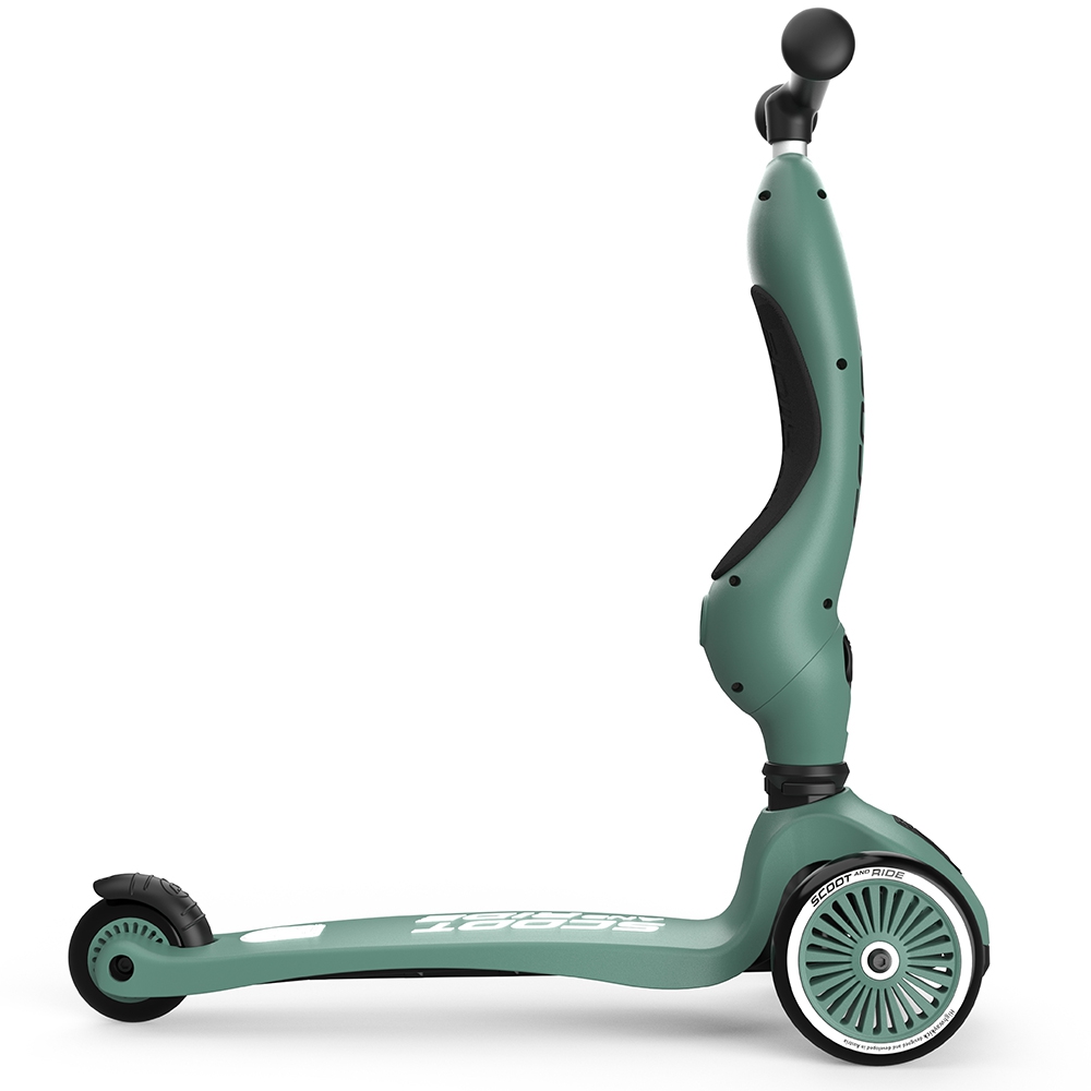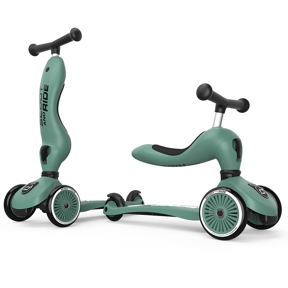 Gdy dziecko już będzie za duże na jeździk, pojazd można łatwo przekształcić w hulajnogę za pomocą jednego przycisku i w ciągu paru sekund. Dzięki temu Highwaykick1 wystarczy do około piątego roku życia i zapewni mnóstwo frajdy. Metamorfozę jeździka w hulajnogę zalecany gdy dziecko jest w wieku ok. 20-24 miesięcy. Zmiana pojazdu w hulajnogę odbywa się bez użycia jakichkolwiek narzędzi. Wystarczy użyć jednego przycisku i obrócić siedzisko w pozycje pionową, następnie przenosimy kierownicę, która montowana jest na wcisk i gotowe. Wysokość kierownicy w hulajnodze regulowana jest 3-stopniowo – rączki kierownicy mogą znajdować się na wysokościach 60, 63 oraz 66 cm. Limit wagowy hulajnogi wynosi 50 kg.