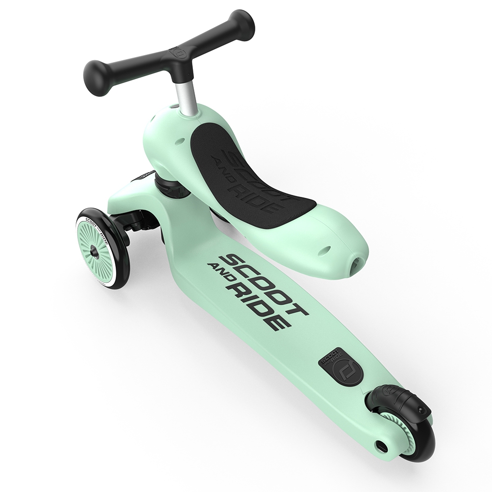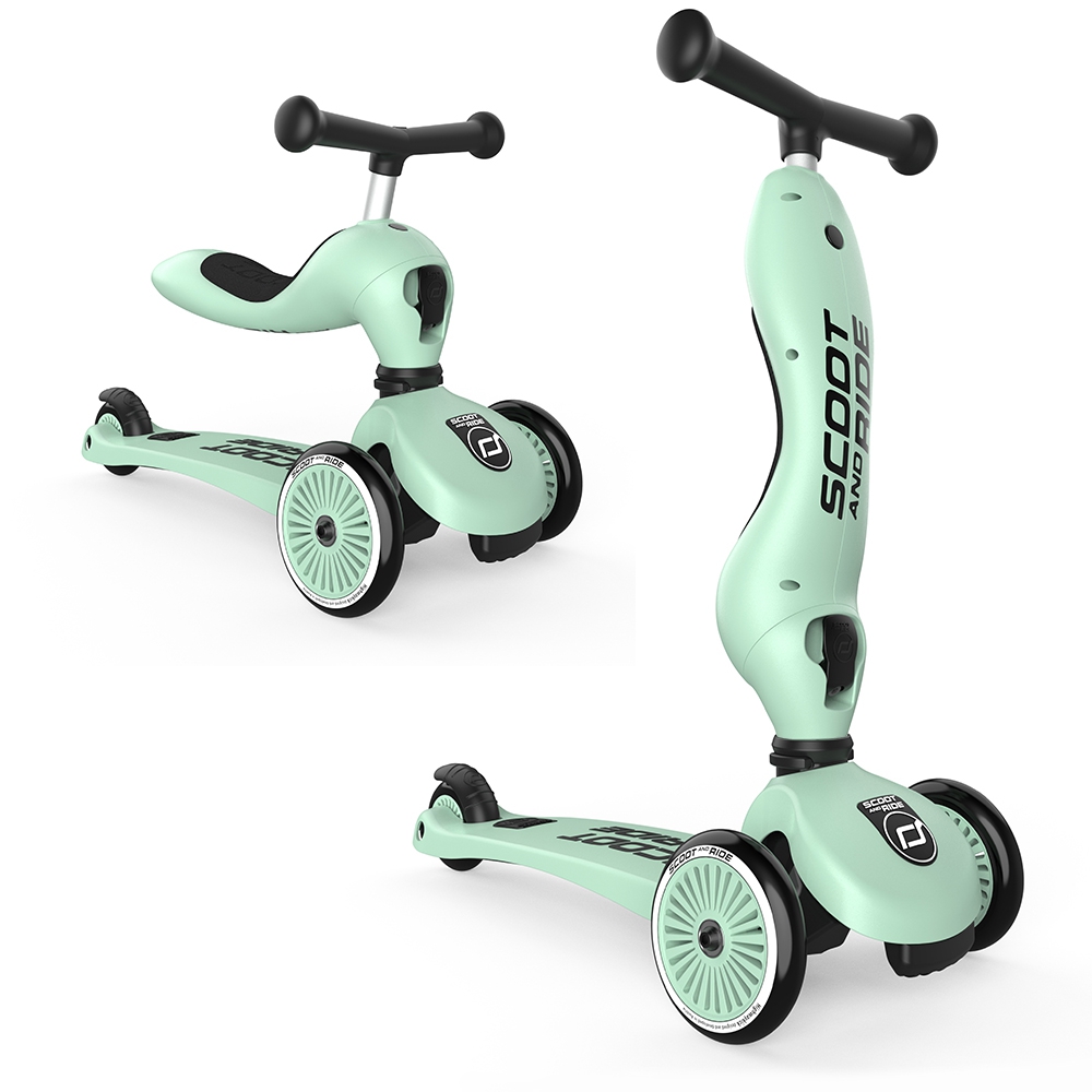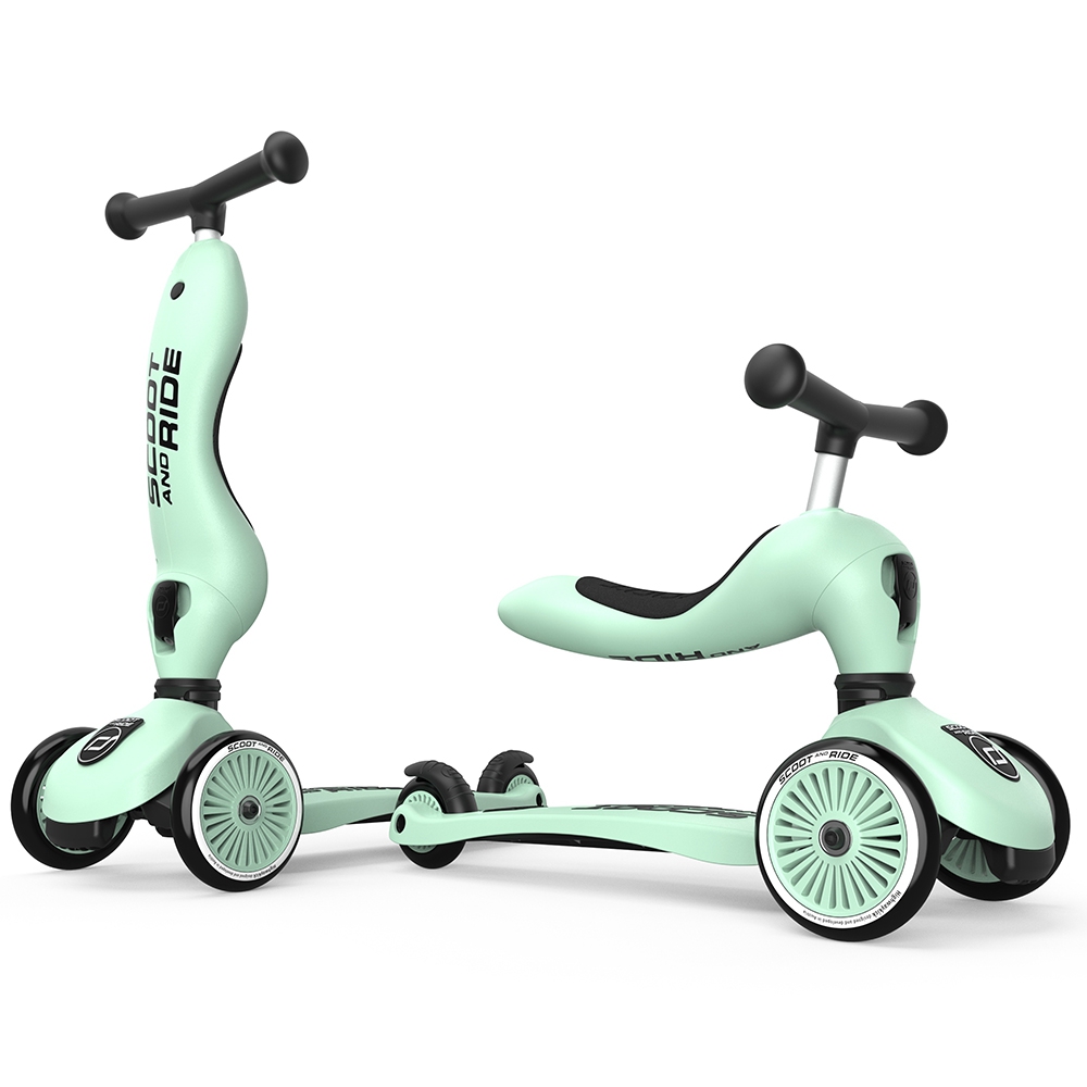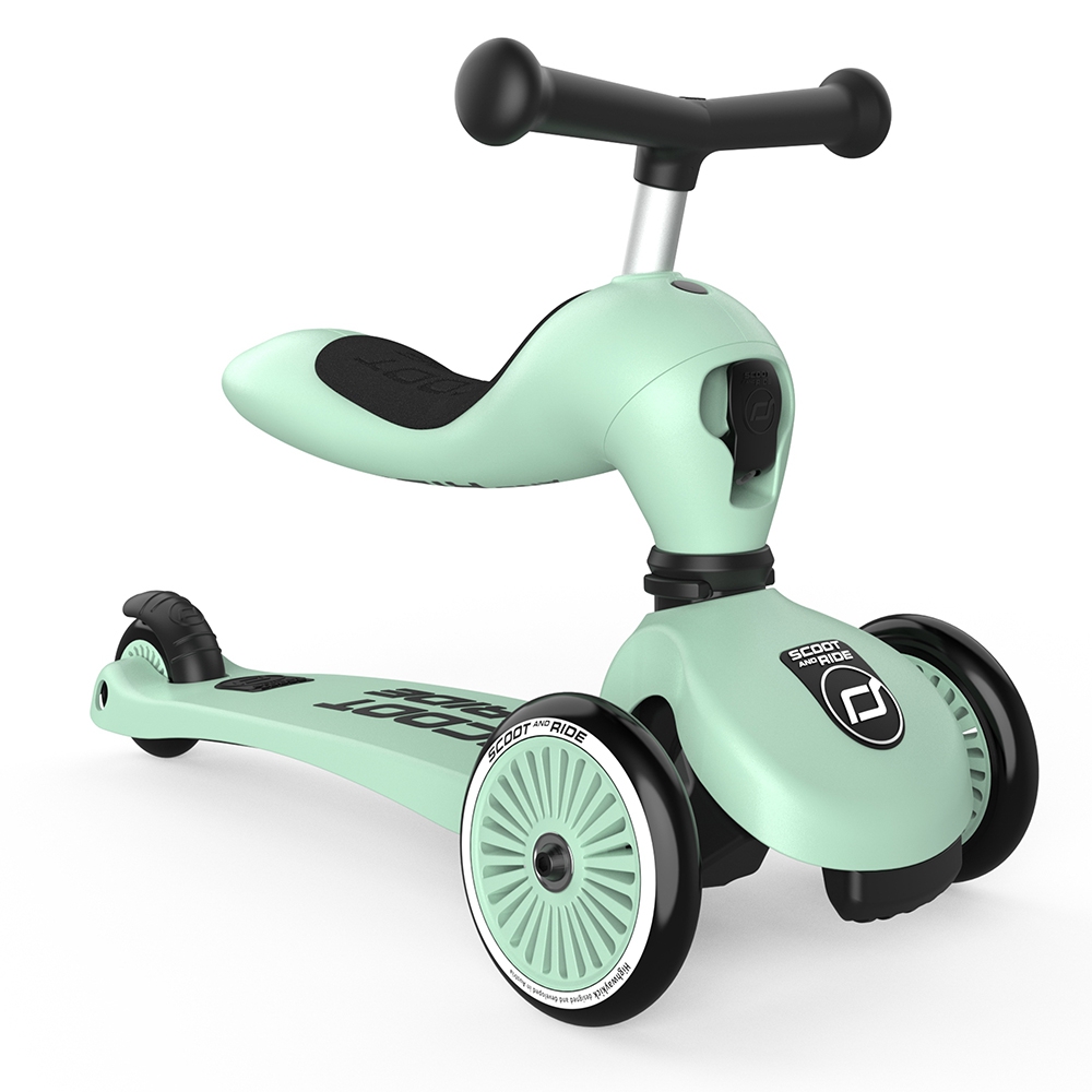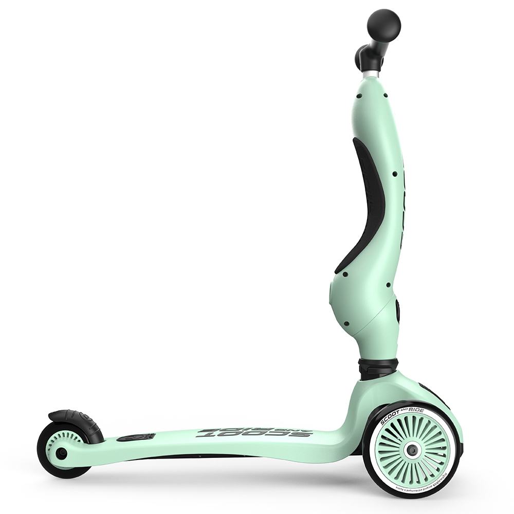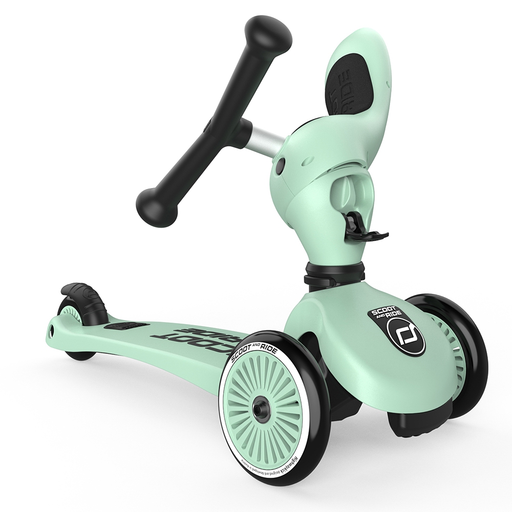 Gdy dziecko już będzie za duże na jeździk, pojazd można łatwo przekształcić w hulajnogę za pomocą jednego przycisku i w ciągu paru sekund. Dzięki temu Highwaykick1 wystarczy do około piątego roku życia i zapewni mnóstwo frajdy. Metamorfozę jeździka w hulajnogę zalecany gdy dziecko jest w wieku ok. 20-24 miesięcy. Zmiana pojazdu w hulajnogę odbywa się bez użycia jakichkolwiek narzędzi. Wystarczy użyć jednego przycisku i obrócić siedzisko w pozycje pionową, następnie przenosimy kierownicę, która montowana jest na wcisk i gotowe. Wysokość kierownicy w hulajnodze regulowana jest 3-stopniowo – rączki kierownicy mogą znajdować się na wysokościach 60, 63 oraz 66 cm. Limit wagowy hulajnogi wynosi 50 kg.