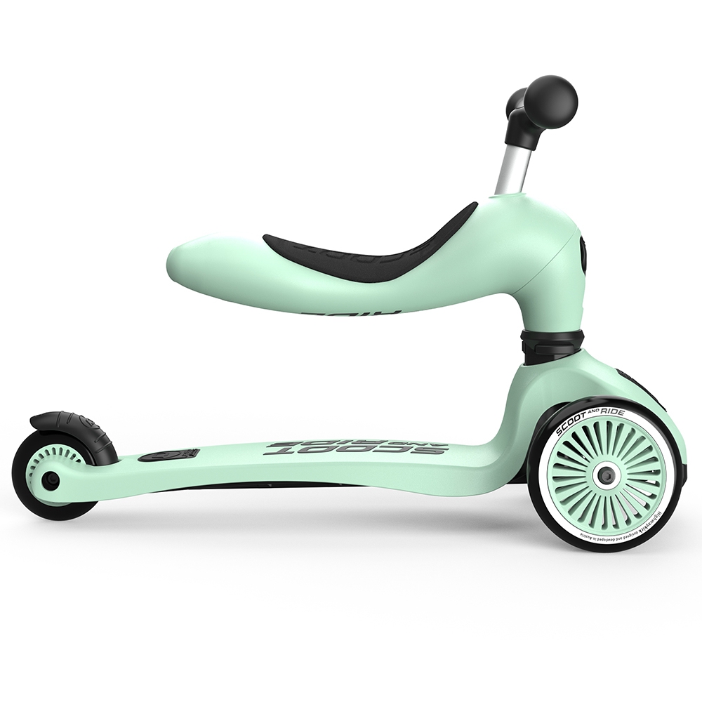 Hulajnoga Scoot&Ride dla najmniejszych dzieci przybiera postać balansowego jeździka z wygodnym siodełkiem. Siedzisko jest bardzo ergonomicznie wyprofilowane, aby podczas odpychania się dziecko miało maksimum komfortu. Może ono być ustawione w trzech pozycjach, na wysokości 21, 25 lub 29 cm od podłoża. Siodełko posiada limit wagowy do 20 kg. Jeździki są doskonałym wstępem do aktywnej przygody, która wspomoże rozwój psychoruchowy dziecka na przestrzeni wielu lat. W jeździku istnieje możliwość zablokowania skrętu kierownicy, to opcja dla najmniejszych dzieci dla zapewnienia lepszej równowagi.