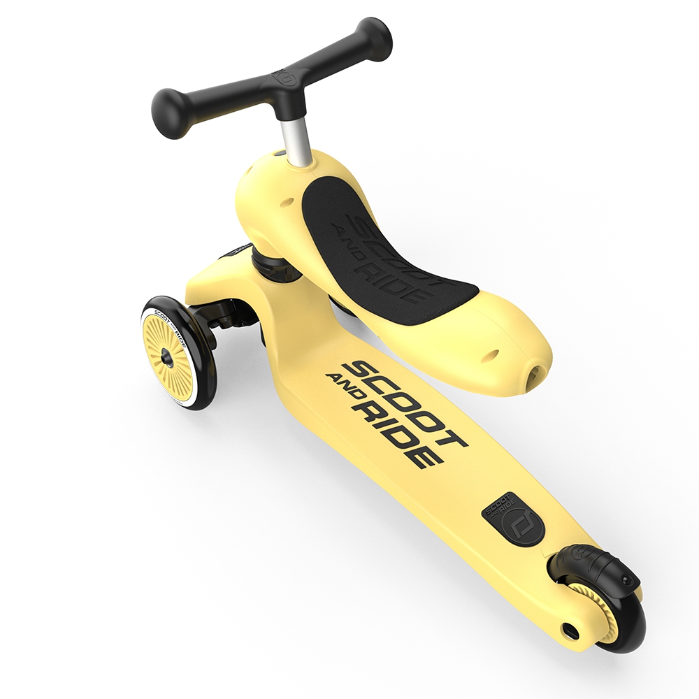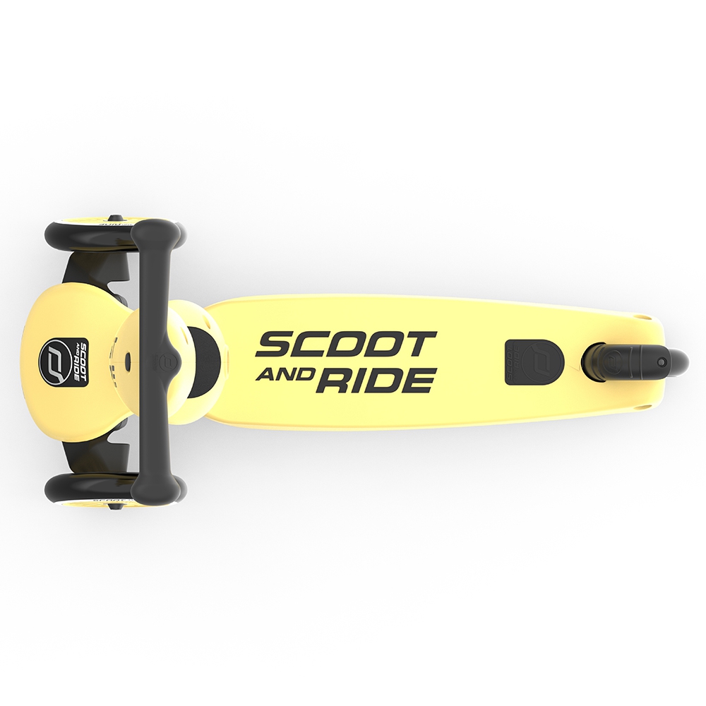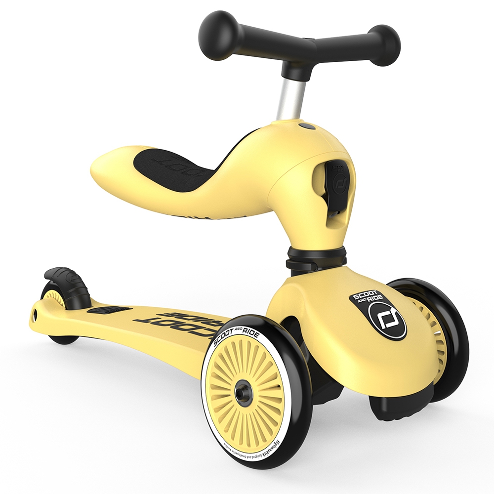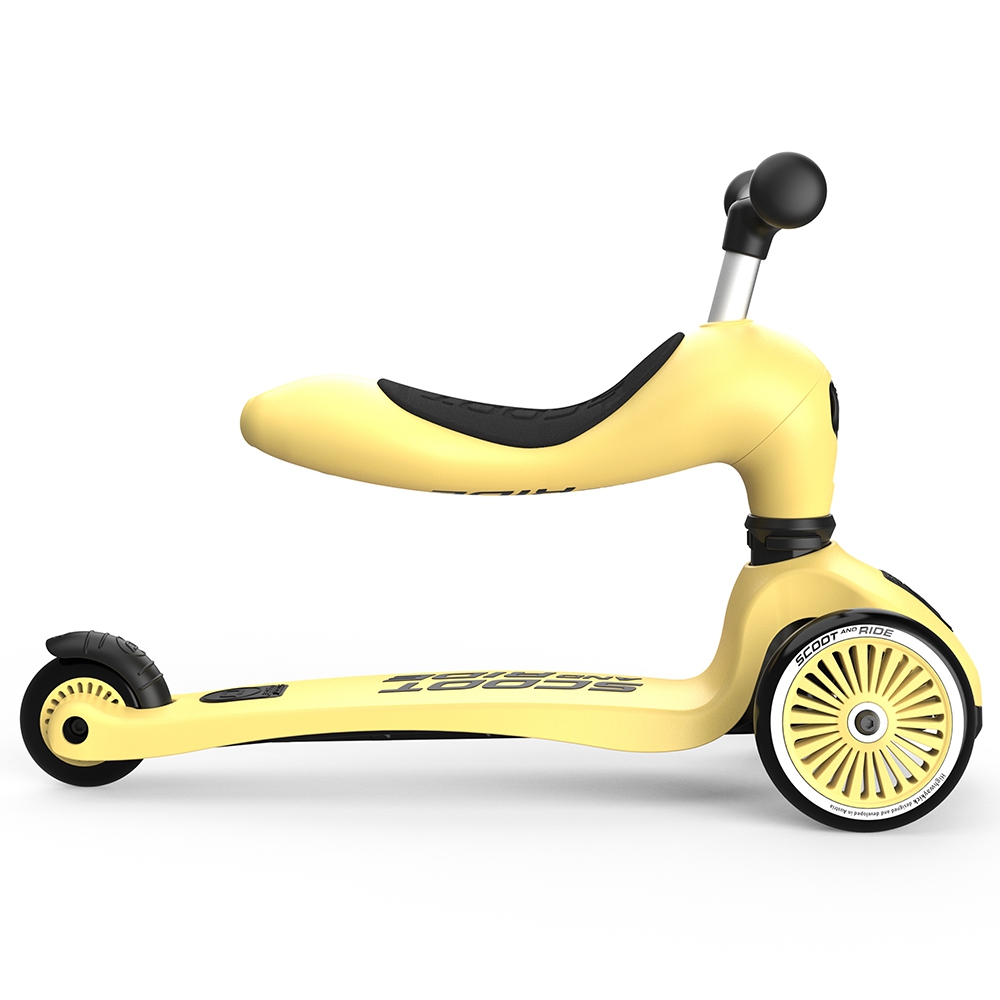 Hulajnoga Scoot&Ride dla najmniejszych dzieci przybiera postać balansowego jeździka z wygodnym siodełkiem. Siedzisko jest bardzo ergonomicznie wyprofilowane, aby podczas odpychania się dziecko miało maksimum komfortu. Może ono być ustawione w trzech pozycjach, na wysokości 21, 25 lub 29 cm od podłoża. Siodełko posiada limit wagowy do 20 kg. Jeździki są doskonałym wstępem do aktywnej przygody, która wspomoże rozwój psychoruchowy dziecka na przestrzeni wielu lat. W jeździku istnieje możliwość zablokowania skrętu kierownicy, to opcja dla najmniejszych dzieci dla zapewnienia lepszej równowagi.
