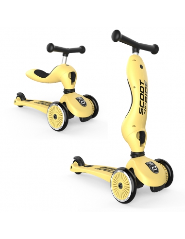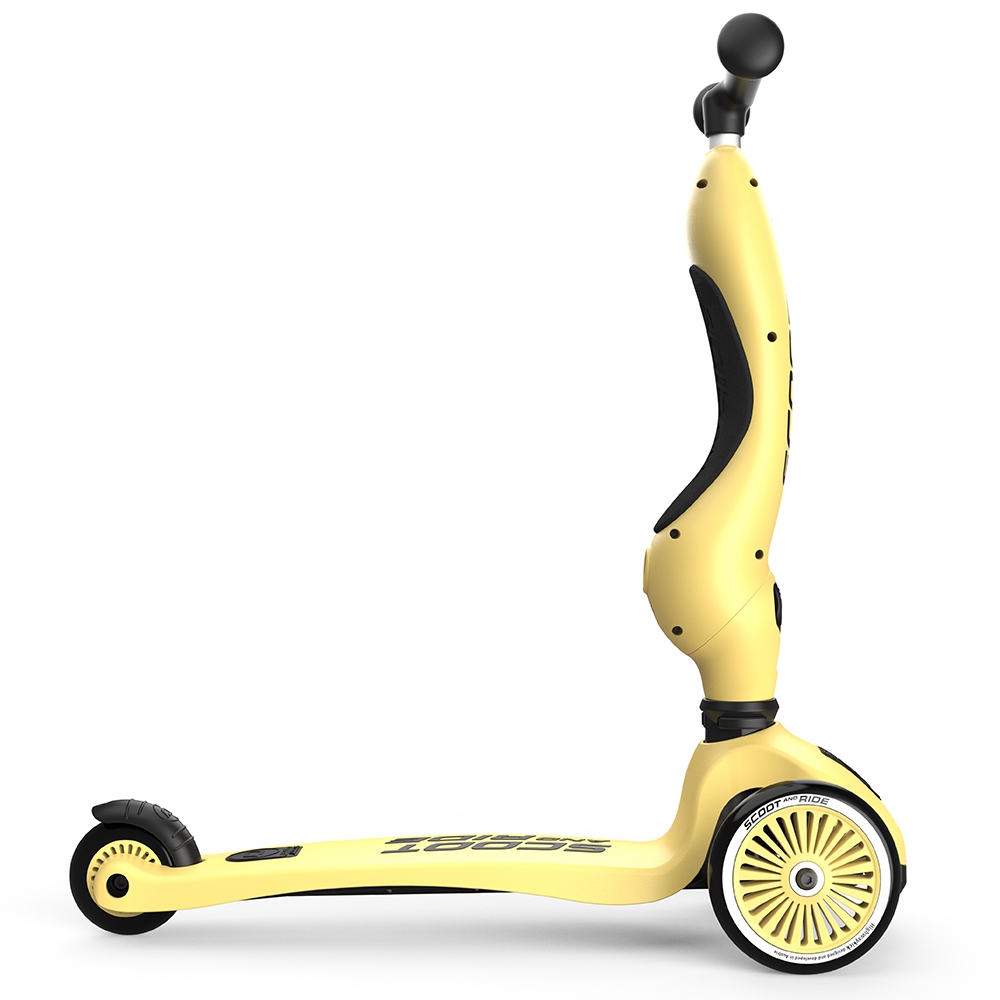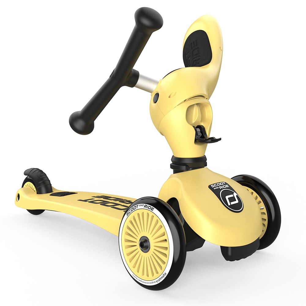 Gdy dziecko już będzie za duże na jeździk, pojazd można łatwo przekształcić w hulajnogę za pomocą jednego przycisku i w ciągu paru sekund. Dzięki temu Highwaykick1 wystarczy do około piątego roku życia i zapewni mnóstwo frajdy. Metamorfozę jeździka w hulajnogę zalecany gdy dziecko jest w wieku ok. 20-24 miesięcy. Zmiana pojazdu w hulajnogę odbywa się bez użycia jakichkolwiek narzędzi. Wystarczy użyć jednego przycisku i obrócić siedzisko w pozycje pionową, następnie przenosimy kierownicę, która montowana jest na wcisk i gotowe. Wysokość kierownicy w hulajnodze regulowana jest 3-stopniowo – rączki kierownicy mogą znajdować się na wysokościach 60, 63 oraz 66 cm. Limit wagowy hulajnogi wynosi 50 kg.