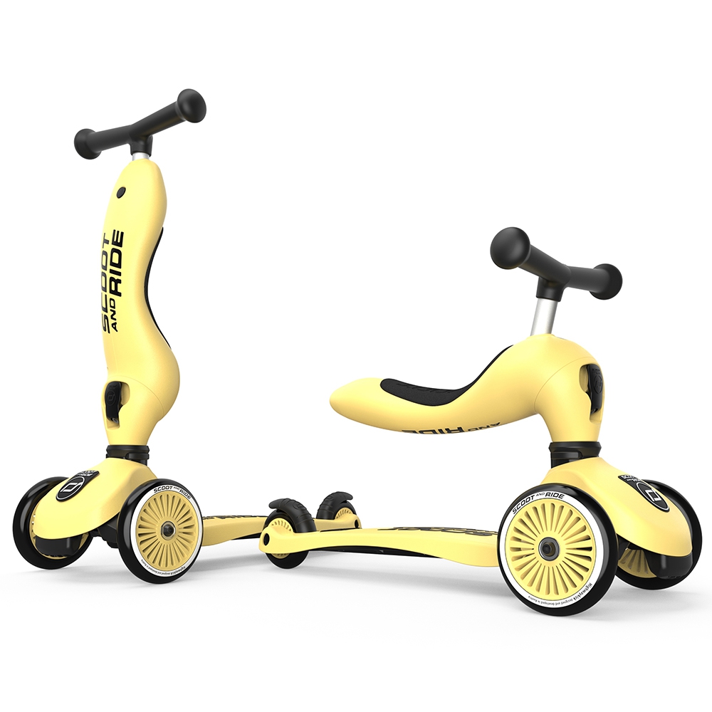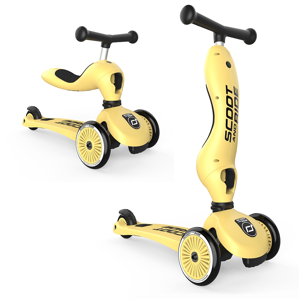 Trójkołowa hulajnoga/jeździk Scoot&Ride Highwaykick1 2w1 przeznaczona jest dla dzieci w przedziale wiekowym od 1 aż do 5 roku życia, co pozwala cieszyć się pojazdem przez naprawdę długi czas. Dla najmniejszych hulajnoga służy jako trójkołowy jeździk, natomiast później za pomocą jednego przycisku w parę sekund można go zamienić w hulajnogę o regulowanej wysokości kierownicy.