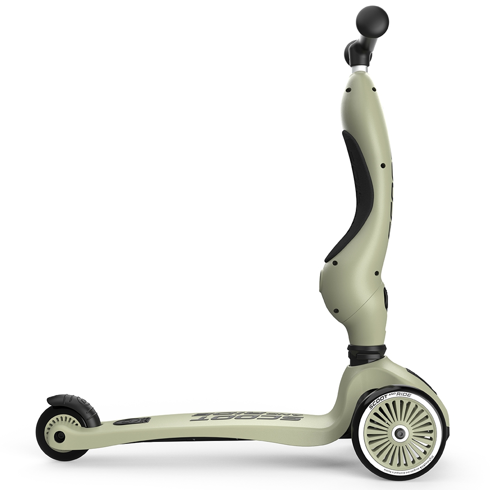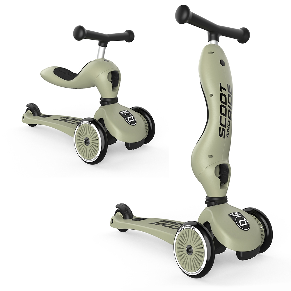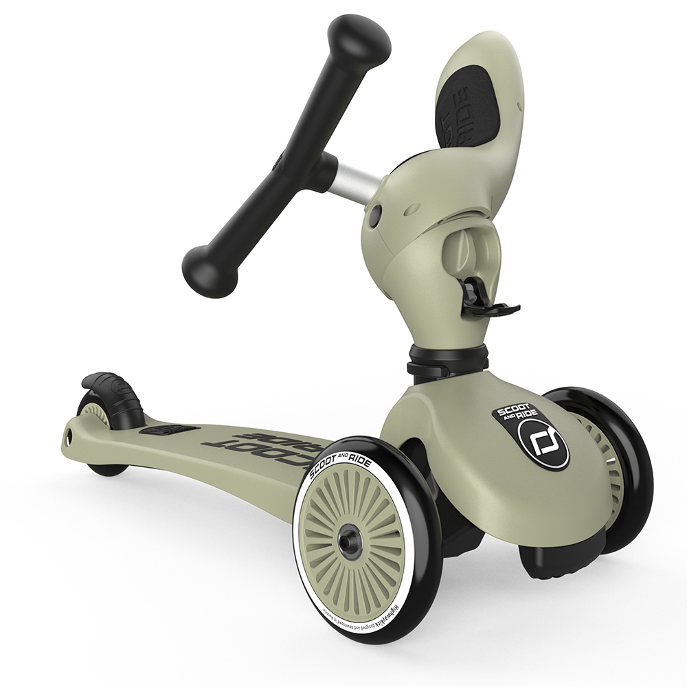 Gdy dziecko już będzie za duże na jeździk, pojazd można łatwo przekształcić w hulajnogę za pomocą jednego przycisku i w ciągu paru sekund. Dzięki temu Highwaykick1 wystarczy do około piątego roku życia i zapewni mnóstwo frajdy. Metamorfozę jeździka w hulajnogę zalecany gdy dziecko jest w wieku ok. 20-24 miesięcy. Zmiana pojazdu w hulajnogę odbywa się bez użycia jakichkolwiek narzędzi. Wystarczy użyć jednego przycisku i obrócić siedzisko w pozycje pionową, następnie przenosimy kierownicę, która montowana jest na wcisk i gotowe. Wysokość kierownicy w hulajnodze regulowana jest 3-stopniowo – rączki kierownicy mogą znajdować się na wysokościach 60, 63 oraz 66 cm. Limit wagowy hulajnogi wynosi 50 kg.