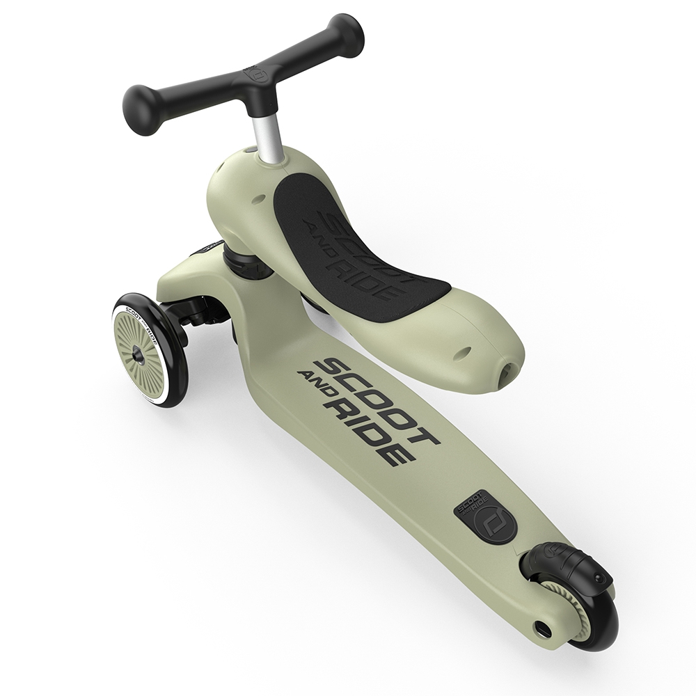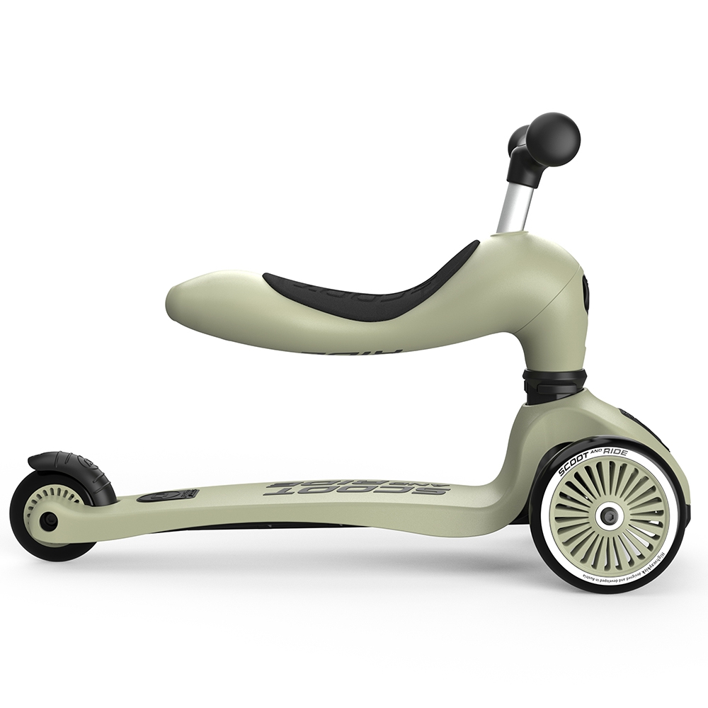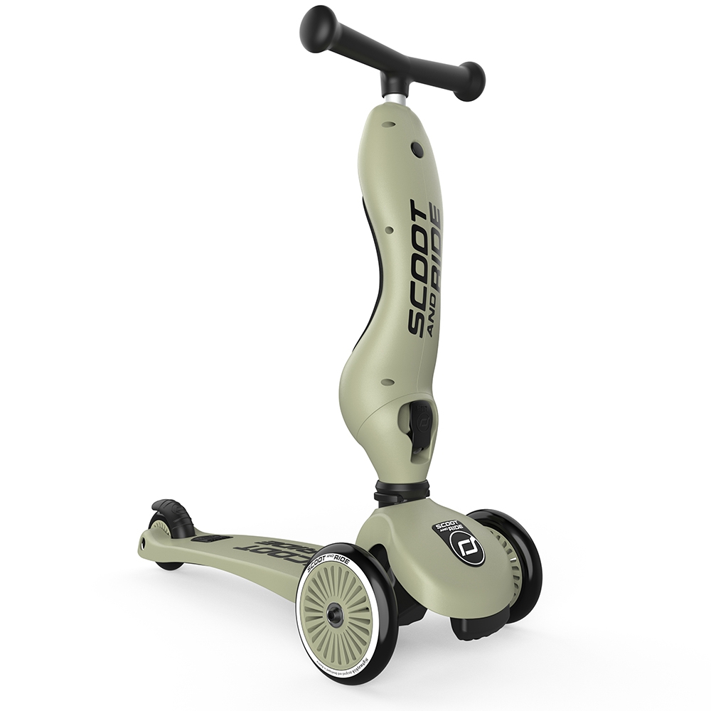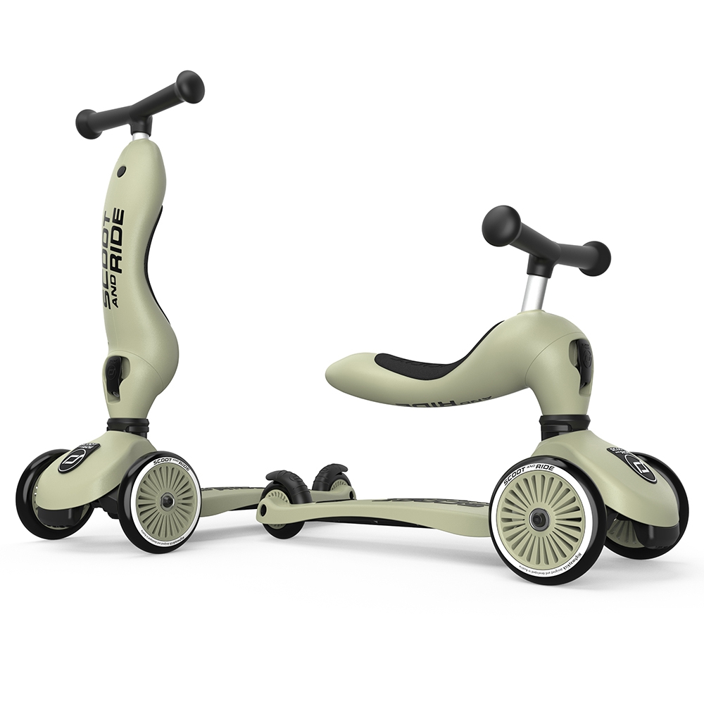 Gdy dziecko już będzie za duże na jeździk, pojazd można łatwo przekształcić w hulajnogę za pomocą jednego przycisku i w ciągu paru sekund. Dzięki temu Highwaykick1 wystarczy do około piątego roku życia i zapewni mnóstwo frajdy. Metamorfozę jeździka w hulajnogę zalecany gdy dziecko jest w wieku ok. 20-24 miesięcy. Zmiana pojazdu w hulajnogę odbywa się bez użycia jakichkolwiek narzędzi. Wystarczy użyć jednego przycisku i obrócić siedzisko w pozycje pionową, następnie przenosimy kierownicę, która montowana jest na wcisk i gotowe. Wysokość kierownicy w hulajnodze regulowana jest 3-stopniowo – rączki kierownicy mogą znajdować się na wysokościach 60, 63 oraz 66 cm. Limit wagowy hulajnogi wynosi 50 kg.