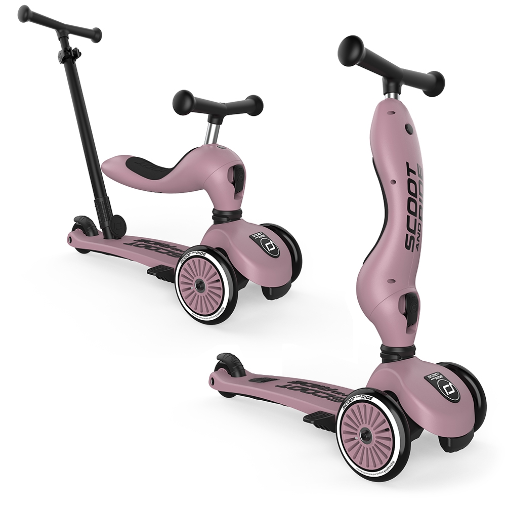 Scoot&Ride Highwaykick1 Push & Go 2w1 to trójkołowa hulajnoga i jeździk, zaprojektowana z myślą o dzieciach w wieku od 1 do 5 lat, co sprawia, że pojazd będzie towarzyszyć maluchowi przez długi czas. Początkowo może służyć jako jeździk trójkołowy dla najmłodszych, a gdy dziecko podrośnie, wystarczy jeden przycisk, aby w kilka sekund przekształcić go w hulajnogę z regulowaną wysokością kierownicy.