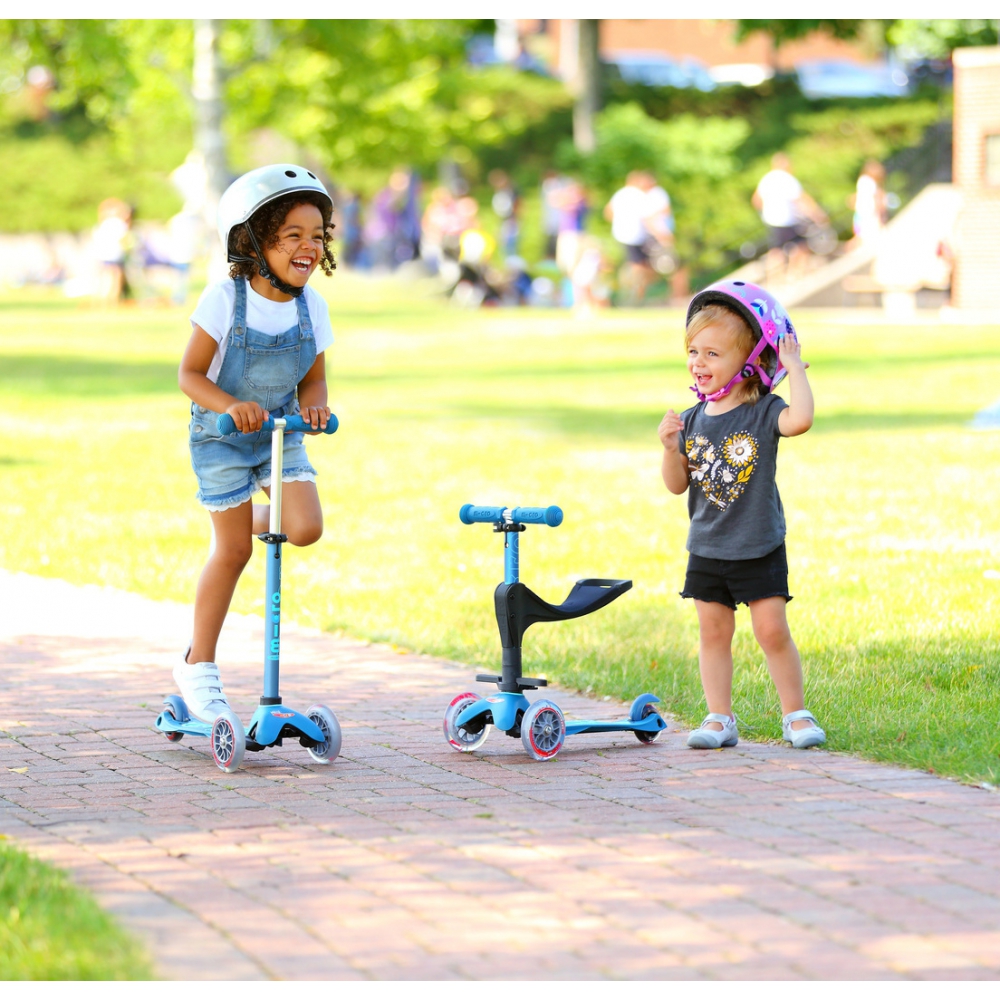 Hulajnoga Jeździk Mini Micro 3w1 Deluxe Plus LED Blue (z siedziskiem i drążkiem do pchania, świecące koła)