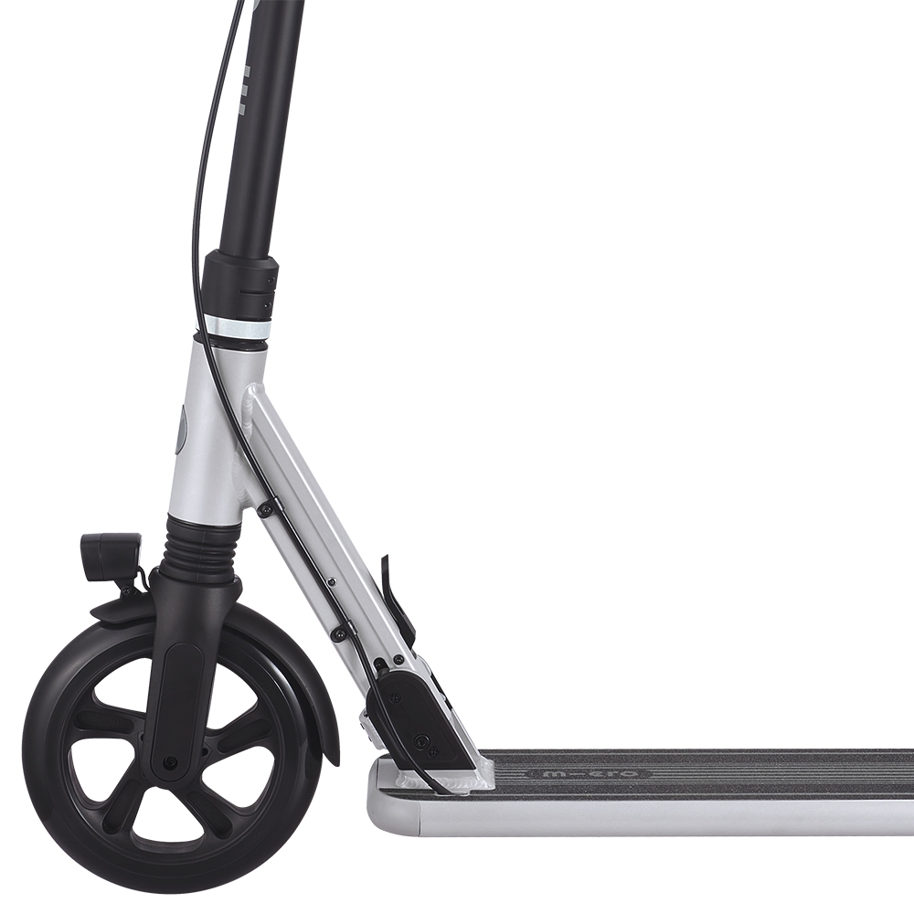 Jazda hulajnogą po starych chodnikach czy nierównych alejkach jest nie tylko mniej wygodna, a także i mniej bezpieczna. Model Micro Suburb Reloaded całkowicie jednak rozwiązuję ten problem. Rewolucją jest amortyzacja przedniego koła, która wyłapuje wszystkie nierówności i absorbuje wstrząsy. Amortyzator jest bardzo czuły dlatego spełni swoją rolę niezależnie czy hulajnogi używa dorosły czy też dziecko. Kolejnym elementem ułatwiającym jazdę po wyboistym terenie są duże, 200 mm koła. Obsługiwane przez wysokiej klasy łożyska zapewniają nie tylko płynne toczenie, ale dzięki swojemu rozmiarowi lepiej sprawdzą się pokonując drobne przeszkody i pagórki. Koła wykonane są z syntetycznego kauczuku, który jest odporny na odkształcenia i odpowiednio twardy by zapewnić wygodną jazdę przez długi czas.