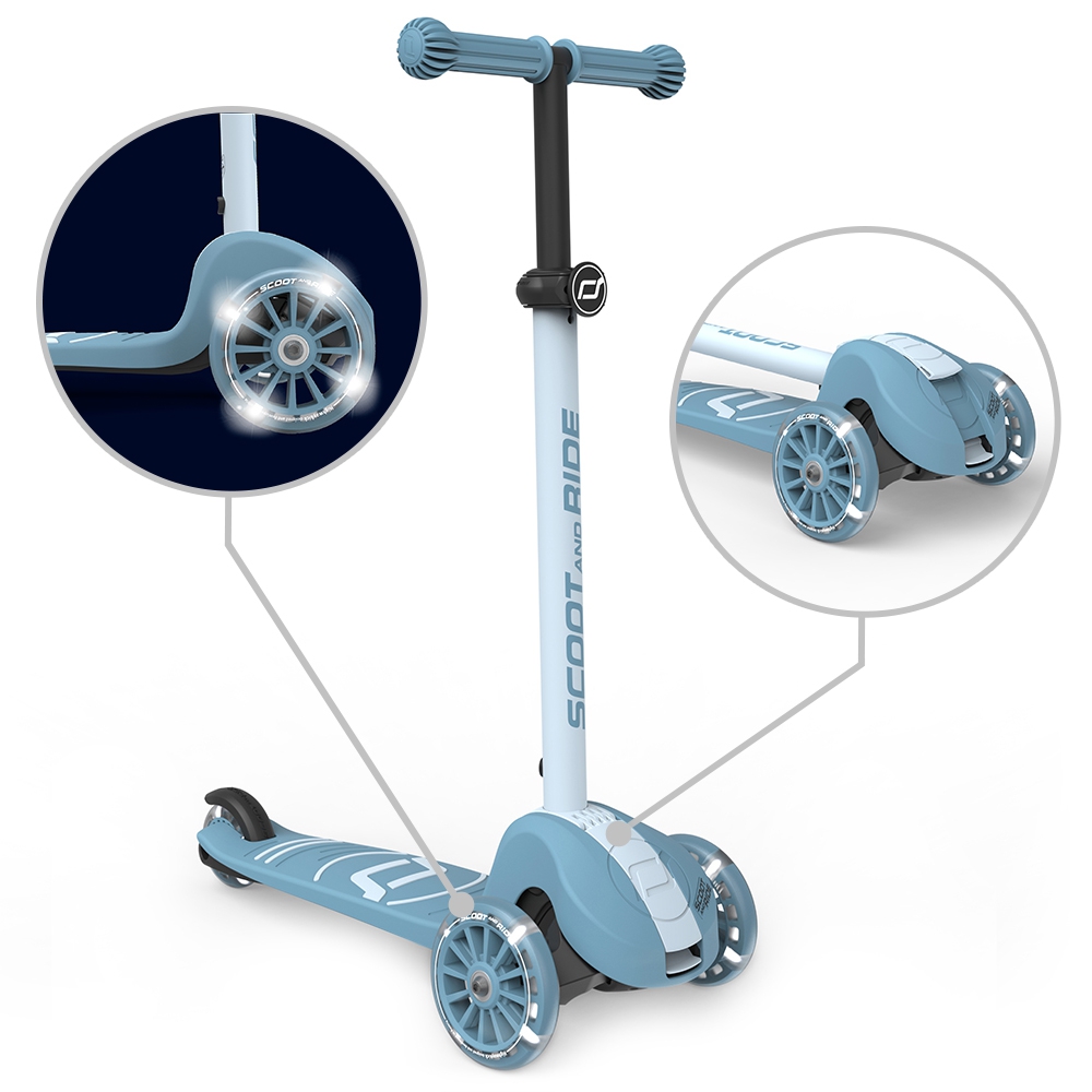 Hulajnoga Scoot&Ride Highwaykick 3S LED Steel (składana, świecące koła, sterowanie 2w1) + pasek do noszenia GRATIS