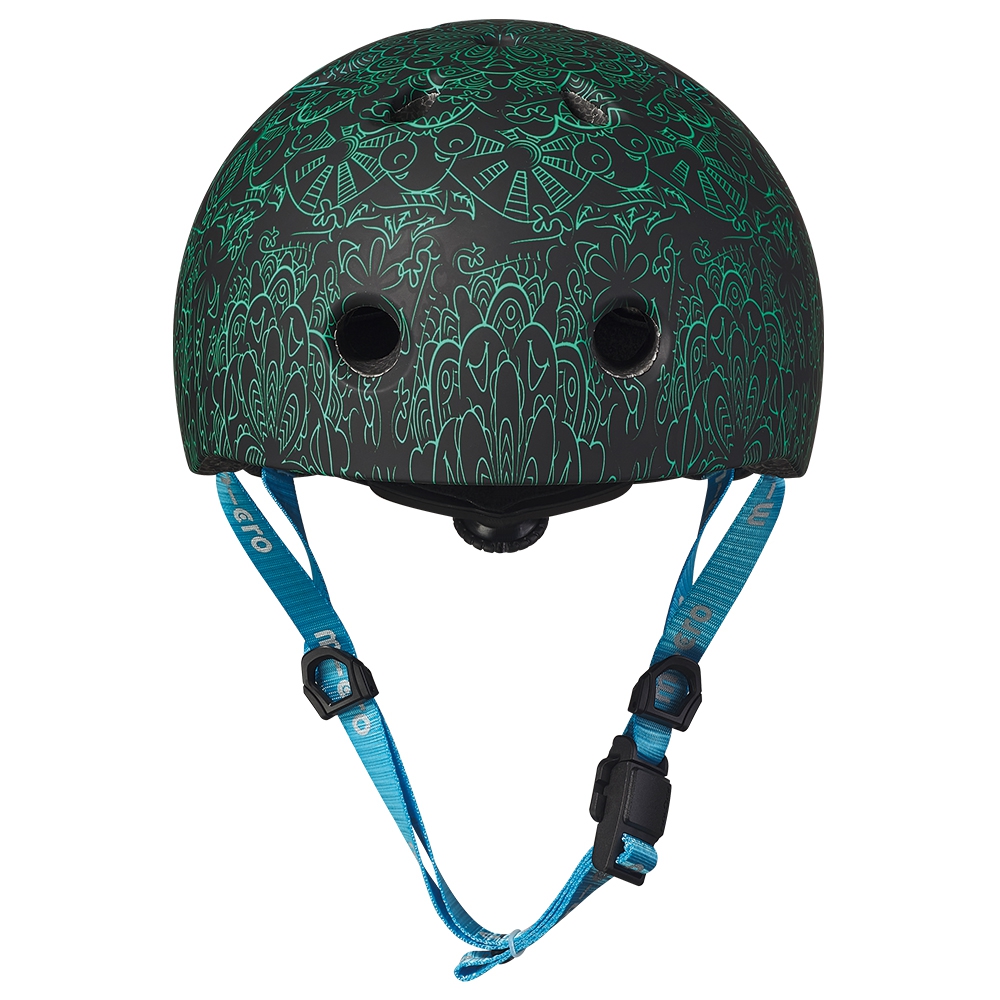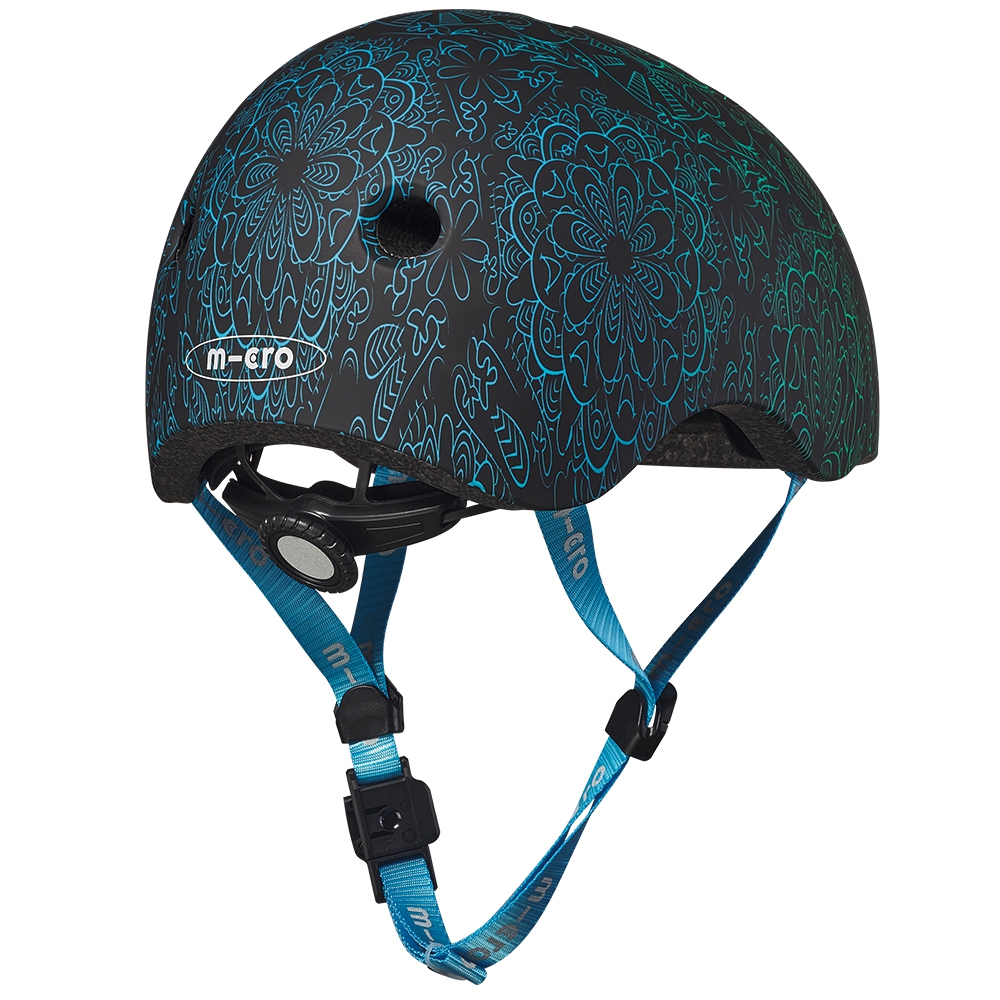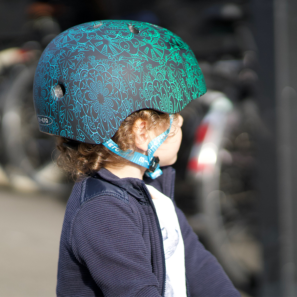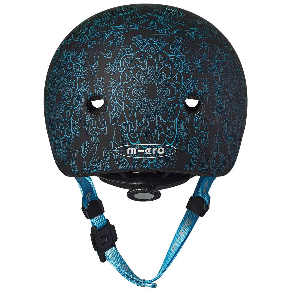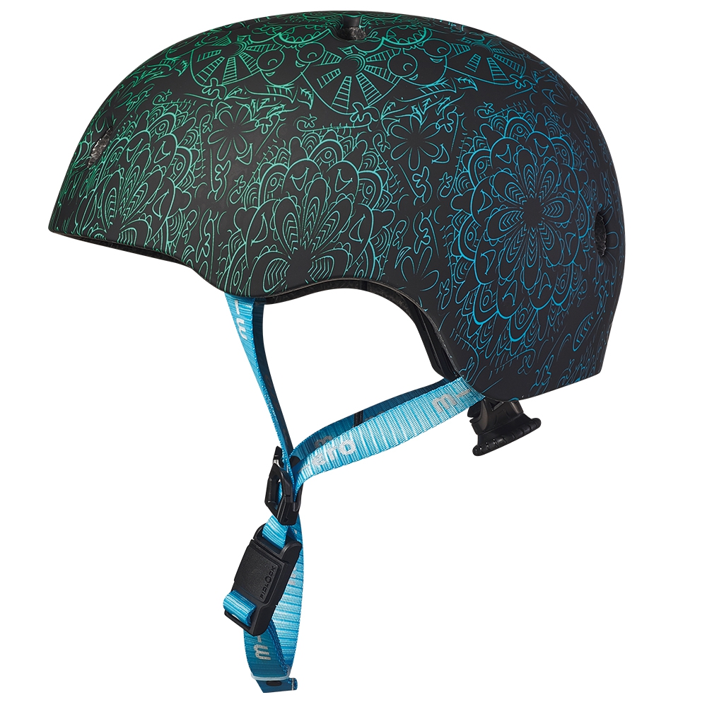 Kaski Micro projektowane są z myślą o najmłodszych, aby zapewnić im bezpieczeństwo podczas aktywnego spędzenia czasu na hulajnodze, rowerze, rowerku biegowym, rolkach lub deskorolce. Zamysłem kasku typu 'orzeszek' jest ochrona największej części głowy oraz przede wszystkim ochrona potylicy – to właśnie w aktywnościach typu jazda na hulajnodze, rolkach czy na deskorolce większość upadków jest właśnie do tyłu i naraża tył głowy na obrażenia. Wyzwaniem dla producenta jest, aby w parze z maksymalną ochroną głowy szła również jak najniższa waga, szczególnie że dzieci mogą nie zrozumieć, że jest to dla ich dobra i szybko się zrażą, jeśli kask będzie im za bardzo ciążył na głowie. Dlatego właśnie Micro zdecydowało się użyć pianki EPS jako wypełnienia wewnętrznego po to, aby zachować maksimum bezpieczeństwa, a jednocześnie stworzyć kask, który będzie lekki. EPS to pianka o różnej gęstości, która absorbuje energię uderzenia. Zewnętrzna skorupa kasku wykonana z poliwęglanu PC zapewnia wysoką odporność na uderzenia i doskonale uzupełnia się z pianką EPS, tworząc bardzo bezpieczną strukturę. Kask Micro Mandala występuje w rozmiarze: M (54-58 cm).