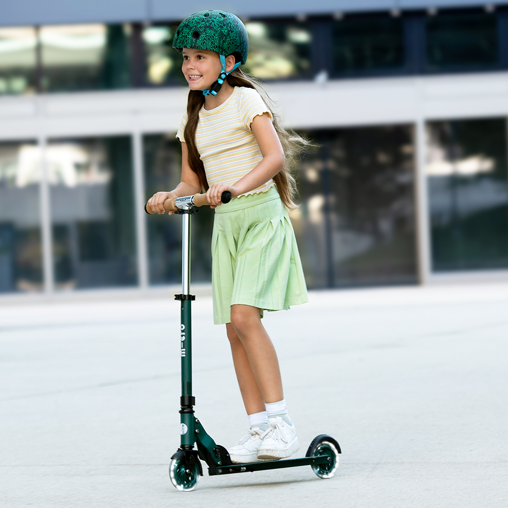 Micro widząc, jak wielką popularnością cieszą się ich dziecięce kaski, postanowiło zaprojektować kask od nowa, jest to udoskonalona i poprawiona wersja klasycznego już kasku. Dużym usprawnieniem jest coraz częściej stosowane i uznane zapięcie na magnes, dzięki czemu już nigdy nie zdarzy się niechcący przyciąć brody. A do tego to rozwiązanie pozwala użytkować zapięcie jedną ręką bez konieczności męczenia się z przyciskami – wystarczy tylko wysunąć jedną część z drugiej palcem. Lampka zamontowana w pokrętle regulacji jest bardzo bezpiecznym pomysłem. Posiada aż trzy tryby świecenia – pojedyncze migające światełko, 4 migające światełka oraz światło ciągłe - dzięki temu dziecko po zmroku będzie z daleka widoczne. Ulepszona została również szata graficzna kasków. Kształt kasku jest teraz bardziej smukły oraz posiada inaczej ułożone otwory wentylacyjne – są umieszczone wzdłuż kasku, zapewniając jeszcze lepszą wentylację.