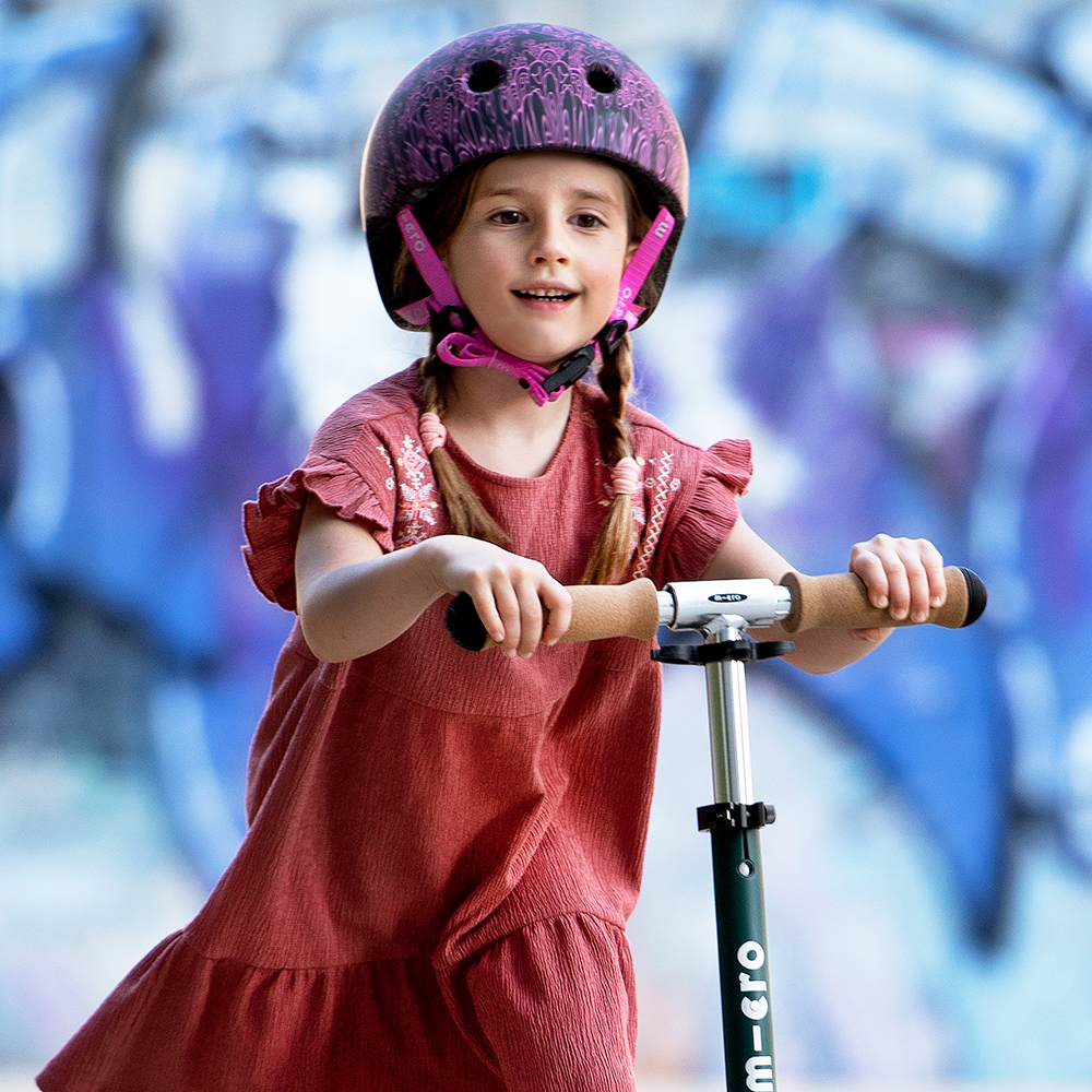 Kask jest najważniejszym elementem wyposażenia podczas jazdy na wszelakiego rodzaju pojazdach – chroni głowę przed urazami powstałymi w wyniku m.in. upadków. Kaski Micro są produkowane z myślą o najmłodszych i dedykowane głównie do jazdy na hulajnodze, ale także na rowerku biegowym biegowy, rowerze, rolkach lub deskorolce. Są to tzw. 'orzeszki' – solidne kaski, mocno zabudowane po to, aby zapewnić najlepszą możliwą ochronę głowy dziecka. Nowa, ulepszona wersja kasków dziecięcych Micro zachęca nie tylko ciekawszym designem, ale również usprawnioną kwestią bezpieczeństwa m.in. zapięciem na magnes oraz lampką. Kask Micro występuje w rozmiarze: M (54-58 cm)