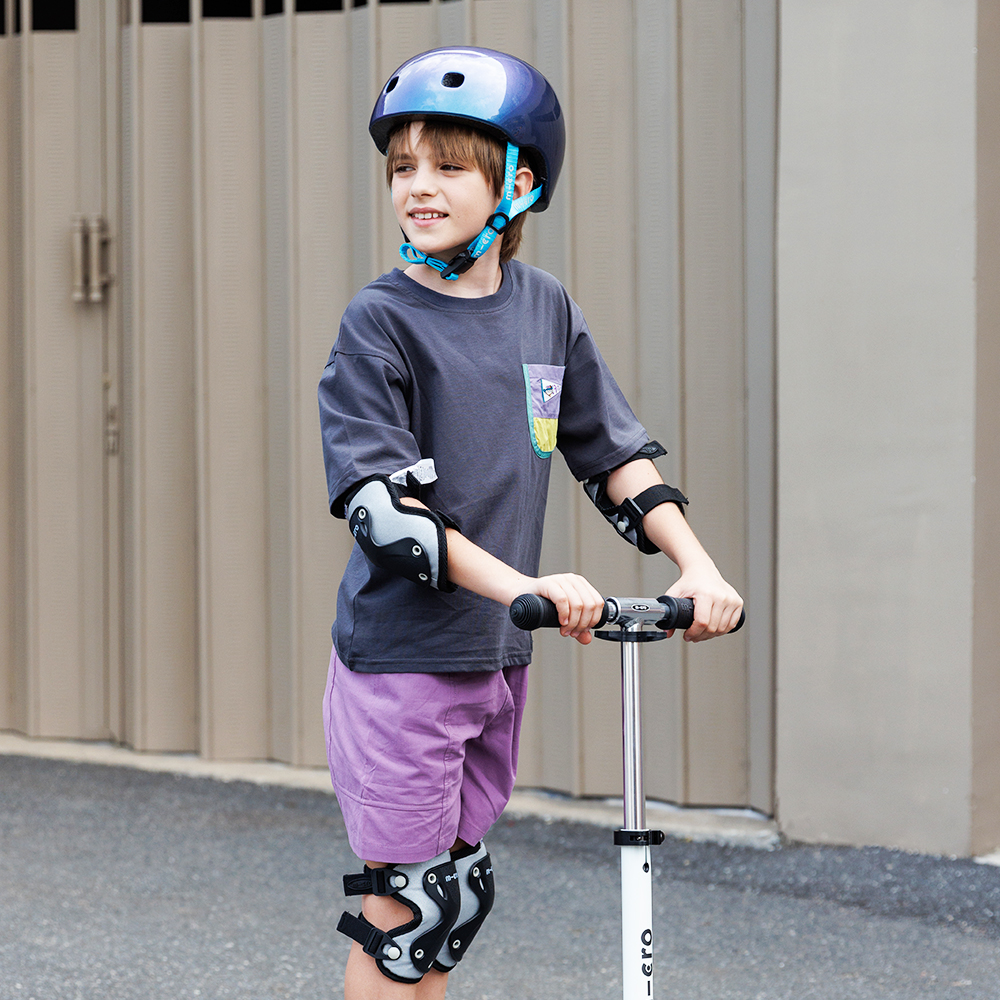Kaski Micro powstały z myślą o najmłodszych, by zapewnić im maksymalne bezpieczeństwo podczas aktywnej zabawy – na hulajnodze, rowerze, rowerku biegowym, rolkach czy deskorolce. Model typu „orzeszek” został zaprojektowany tak, aby chronić jak największą powierzchnię głowy, ze szczególnym naciskiem na potylicę. To właśnie ona jest najbardziej narażona na urazy podczas upadków do tyłu, typowych przy jeździe na hulajnodze, rolkach czy deskorolce. Dla producenta kluczowym wyzwaniem było połączenie wysokiego poziomu ochrony z niską wagą kasku. Dzieci często nie zdają sobie sprawy z jego znaczenia, a zbyt ciężki model mógłby je szybko zniechęcić do noszenia. Dlatego Micro zastosowało lekką piankę EPS o zróżnicowanej gęstości, która skutecznie pochłania energię uderzenia. Zewnętrzna skorupa z wytrzymałego poliwęglanu PC dodatkowo wzmacnia całą konstrukcję, tworząc niezawodne połączenie bezpieczeństwa i komfortu. Kaski Micro dostępne są w dwóch rozmiarach: S (48–53 cm) oraz M (52–56 cm), dzięki czemu łatwo dopasować je do potrzeb dziecka.