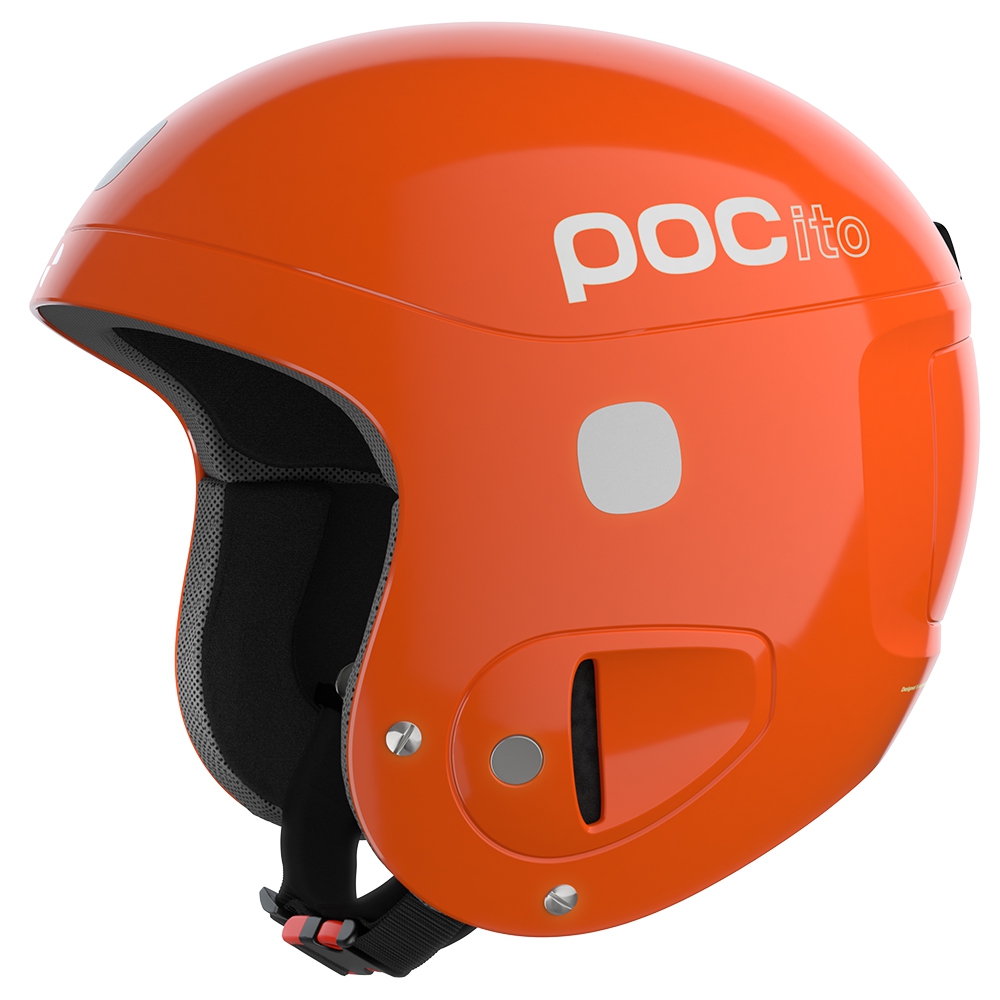 Pasek pod brodę również jest regulowany oraz pokryty miękką pianką zapobiegającą otarciom. Komory słuchowe w kasku zostały zaprojektowane w taki sposób, aby zminimalizować wpływ na równowagę i poprawić słyszalność. Dodatkowo w zestawie z juniorskim kaskiem narciarskim POCito Skull otrzymujemy sygnalizacyjną lampkę LED montowaną na tył kasku oraz kamizelkę odblaskową. Do kasku można także domontować aluminiową szczękę (gardę) POC Chin dostępną w naszej ofercie, która dodatkowo zwiększy bezpieczeństwo użytkownika. Na tyle kasku znajduje się klips na gogle, na którego wewnętrznej wersji można opisać swoje dane ułatwiając jego znalezienie w przypadku zgubienia.