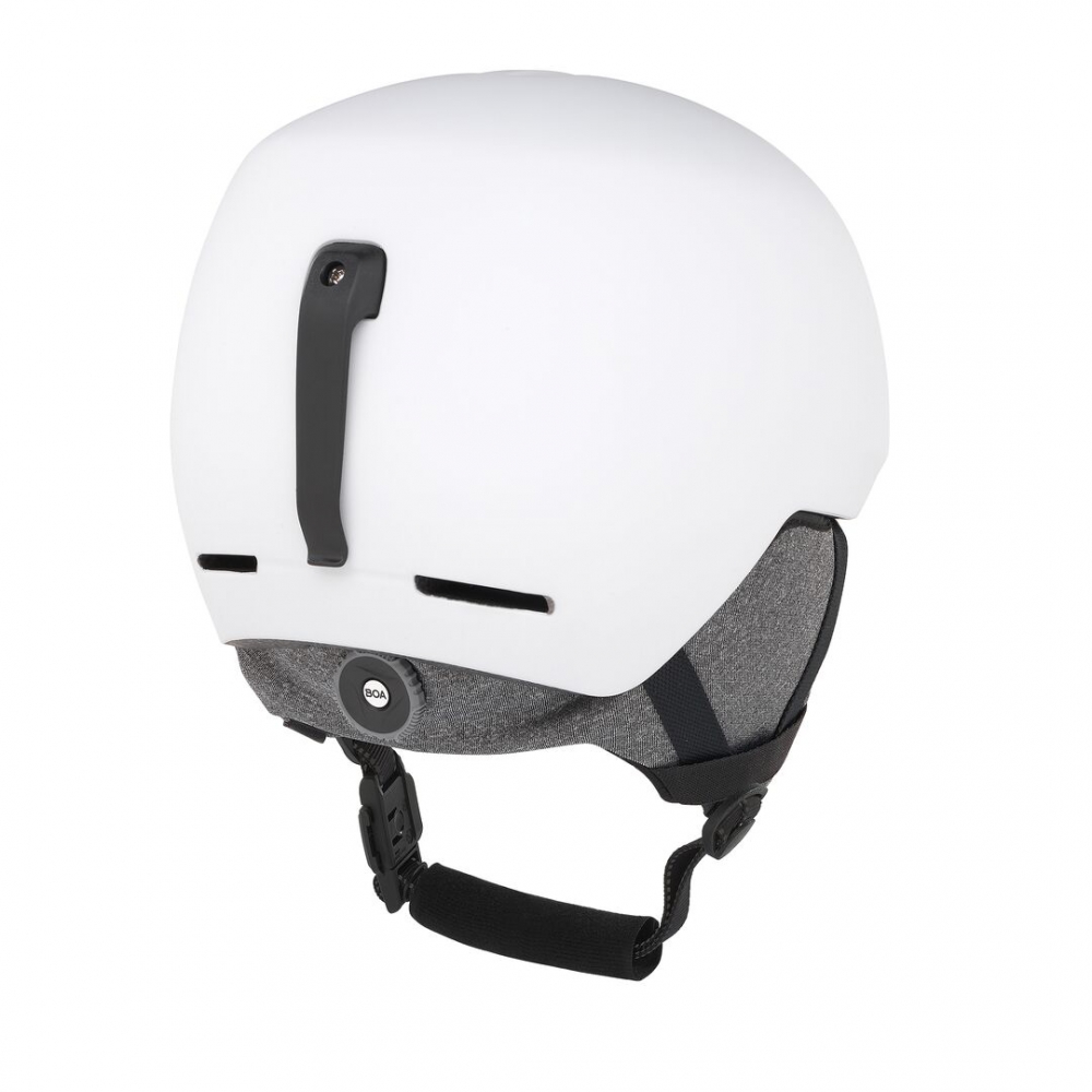 Za precyzyjne dopasowanie kasku Oakley MOD1 MIPS Junior odpowiada system BOA® 360 Fit, który umożliwia płynną regulację obwodu jednym pokrętłem – także w rękawicach, co pozwala szybko dostosować kask do kształtu głowy dziecka. Odpowiednio rozmieszczone otwory wentylacyjne wspierają naturalny przepływ powietrza wewnątrz kasku, skutecznie odprowadzając nadmiar ciepła i wilgoci podczas jazdy. Dodatkowe kanały w przedniej części kasku umożliwiają swobodny przepływ powietrza z gogli, co pomaga ograniczyć ich parowanie i poprawia komfort widzenia. Kask posiada wyjmowaną wyściółkę, którą można łatwo wyprać, co ułatwia utrzymanie higieny. Zastosowano również specjalną wkładkę dopasowującą, która stabilizuje kask na głowie, zapobiega jego odchylaniu się do tyłu i zapewnia lepsze osłonięcie czoła oraz bardziej spójne dopasowanie kasku z goglami. Całość uzupełnia magnetyczne zapięcie Fidlock®, umożliwiające szybkie i wygodne zapinanie jedną ręką.