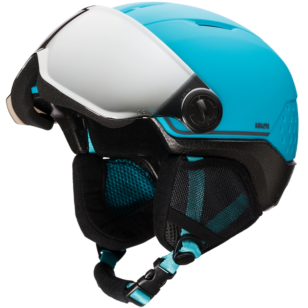 Juniorski kask narciarski Rossignol Whoopee Visor Impacts wyposażony jest w szybę zastępującą klasyczne gogle narciarskie. Wykonana z poliwęglanu cechuje się dużą wytrzymałością chroniąc nie tylko przed słońcem, a także przed drobinkami lodu, śniegiem i wiatrem. Szyba posiada kategorię S3, dzięki najlepiej sprawdza się w warunkach dużego natężenia światła słonecznego. Szyba w kasku narciarskim Rossignol Whoopee Visor Impacts wyposażona jest w technologię UV400, która całkowicie pochłania szkodliwe promieniowanie ultrafioletowe. Kask z szybą to idealne rozwiązanie dla juniorów, którzy noszą na co dzień okulary korekcyjne gdyż pozostawia większą przestrzeń pomiędzy twarzą młodego narciarza, a szybką. Aby zapobiec przedostawaniu się nadmiaru zimnego powietrza zarówno od góry jak i od dołu szyba jest szczelnie uszczelniona. Na dole posiada również miękkie gąbki, które zapewniają komfort i zapobiegają uciskom na nos oraz policzki.