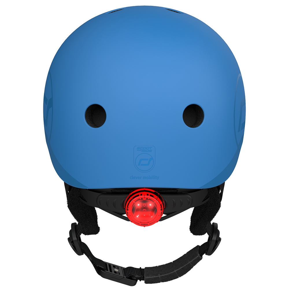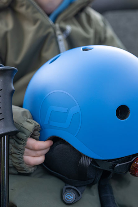 Kask narciarski ScootAndRide Ski Helmet posiada 11 otworów wentylacyjnych, które zapewniają odpowiednią cyrkulację powietrza i zapobiegają przegrzewaniu głowy podczas aktywnej jazdy. Dwa przednie otwory wyposażono w siatkę, która chroni przed dostawaniem się śniegu oraz drobnych zanieczyszczeń. Dodatkowym elementem podnoszącym bezpieczeństwo jest tylna lampka LED, poprawiająca widoczność dziecka w warunkach słabego oświetlenia, np. podczas jazdy o zmierzchu lub w pochmurne dni.