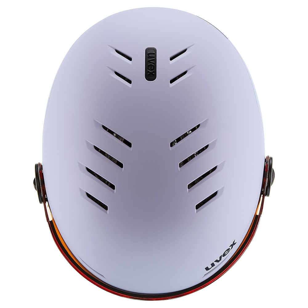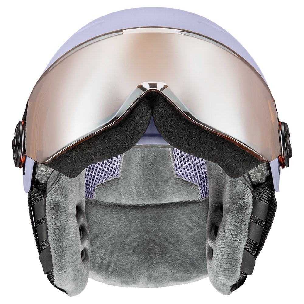 Wbudowana, wykonana z wysokiej jakości poliwęglanu szyba równie skutecznie jak gogle narciarskie chroni oczy przed drobinkami lodu, śniegiem i wiatrem jednakże zostawia większą przestrzeń między buzią dziecka, a soczewką dając możliwość jazdy w okularach. Szyba posiada kategorię S2 co oznacza, iż najlepiej sprawdzi się podczas jazdy w warunkach delikatnego zachmurzenia czy też słabego słońca. Szyba jest uszczelniona od góry oraz od dołu. Posiada również miękkie wkładki na wysokości policzków oraz nosa zapewniając komfort nawet podczas całodniowej jazdy. Powłoka Uvex Supravision® zapobiega parowaniu gogli - zapewnia o 400% większą ochronę przed zaparowaniem w porównaniu do standardowych technologii, co gwarantuje przejrzystość nawet podczas dużych zmian temperatury.