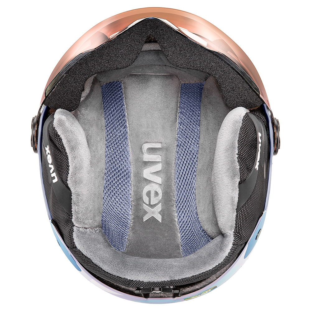 Dziecięcy kask narciarski Uvex Rocket Jr Visor został wyposażony w system regulacji IAS, który pozwala w prosty i szybki sposób wyregulować kask, tak aby idealnie dopasował się do obwodu głowy dziecka. Ponadto w kasku można regulować długość pasków pod brodą oraz na uszach dopasowując go do każdej dziecięcej główki. Wygodne zapięcie paska to technologia Monomatic, która pozwala wyregulować pasek nawet jedną ręką. Od kasku można odczepić nauszniki, dzięki czemu możemy jeszcze bardziej dopasować go do potrzeb dziecka. Wewnętrzna wyściółka kasku Uvex Rocket Jr Visor z bardzo miękkiej i przyjemnej w dotyku tkaniny mikropolarowej kasku zapewnia doskonałą wentylację oraz komfort. Wyściółka ma właściwości antyalergiczne.