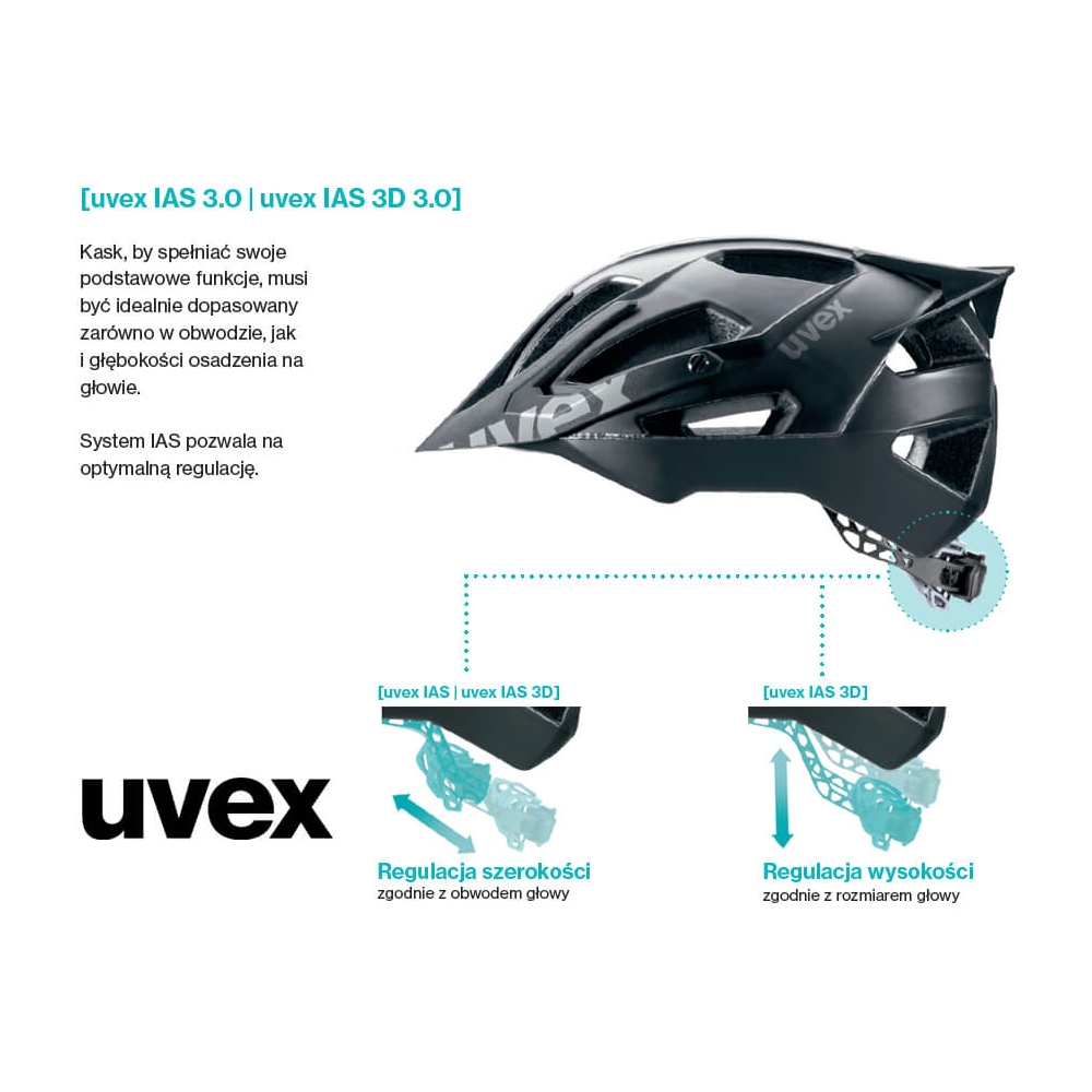 Kask rowerowy Uvex Stride daje możliwość idealnego dopasowania do każdej głowy. W kasku zastosowano system regulacji IAS 3D, dzięki któremu kask dostosujemy idealnie do kształtu głowy. Innowacyjny system IAS 3D pozwala również na regulację głębokości kasku. Takie rozwiązanie pozwoli jeszcze precyzyjniej dopasować kask do głowy oraz wydłuża jego przydatność. Regulacja kasku jest łatwa i szybka, odbywa się za pomocą pokrętła umieszczonego z tyłu kasku. Dodatkowym atutem jest możliwość obsługi regulacji w rękawiczkach