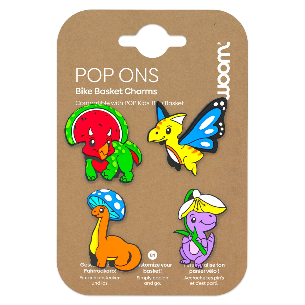 Spersonalizuj swój koszyczek rowerowy woom POP przypinkami woom POP ONS Florassic Park
