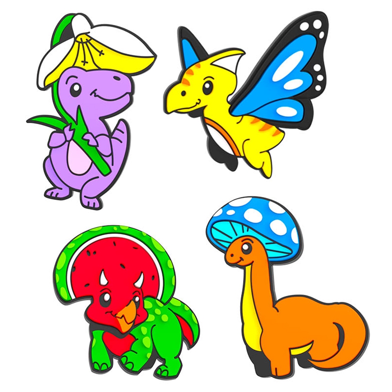 Zestaw zawiera 4 przypinki (1 szt. Flower Rex; 1 szt. Flutters; 1 szt. Fungino; 1 szt. Jurassic Juice;)
