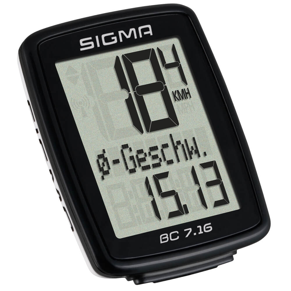Sigma BC 7.16 to niewielki licznik rowerowy, który idealnie nadaje się do codziennego użytku podczas jazdy rowerem. Posiada on czytelny wyświetlacz z ikonami oraz jest łatwy w obsłudze dzięki jednemu przyciskowi. Licznik ma cztery funkcje rowerowe oraz trzy funkcje czasu. Funkcje rowerowe (prędkość aktualna, prędkość średnia, bieżący dystans wycieczki, dystans całkowity naszej trasy). Funkcje czasu (aktualny czas jazdy, całkowity czas jazdy oraz zegar 12/24h).