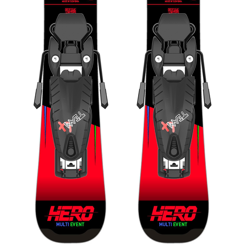 W zestawie z nartami Rossignol Hero Kid dołączone są dziecięce wiązania Look Team 4. Są to wiązania specjalnie zaprojektowane z myślą o najmłodszych narciarzach. Cechują się przede wszystkim najwyższym poziomem bezpieczeństwa, bardzo niską wagą, a także dużą wytrzymałością. Skala wypięcia DIN wiązań to zakres od 0,75 do 4, co oznacza, że przeznaczone są dla dzieci, których waga nie przekracza 40kg. Wiązania Look Team 4 można wyregulować dzięki czemu można je szybko i łatwo dopasować do dowolnego rozmiaru buta dziecięcego. Wiązania powinny być zamontowane przez specjalistów w serwisie bądź sklepie narciarskim.