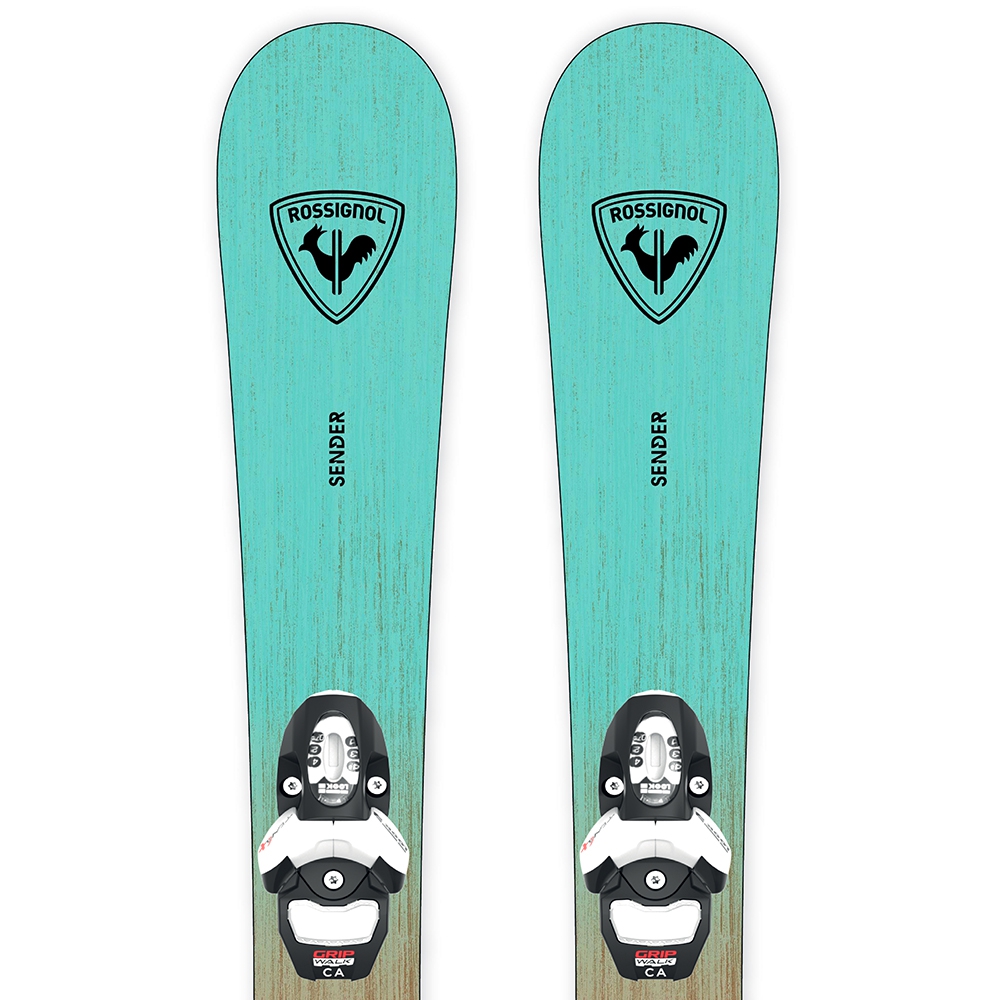 W zestawie z nartami Rossignol Sender znajdują się dziecięce wiązania Look Team 4, zaprojektowane specjalnie z myślą o najmłodszych narciarzach. Charakteryzują się one wysokim poziomem bezpieczeństwa, bardzo niską wagą oraz dużą wytrzymałością. Zakres siły wypięcia DIN od 0,75 do 4 sprawia, że wiązania przeznaczone są dla dzieci o wadze do 40 kg. Dzięki możliwości regulacji można je szybko i łatwo dopasować do różnych rozmiarów dziecięcych butów narciarskich. Dla zachowania pełnego bezpieczeństwa wiązania powinny być montowane przez wykwalifikowany serwis lub w profesjonalnym sklepie narciarskim.