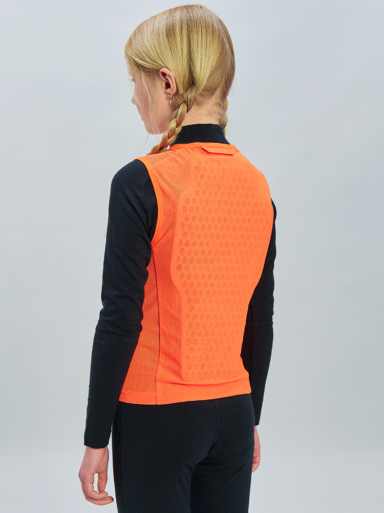 Ochraniacz POCito VPD Air Vest Junior to najnowsza wersja niezawodnego ochraniacza pleców dla juniorów. Elastyczny materiał, z którego został wykonany, zapewnia dużą swobodę ruchów oraz dobrą wentylację co znacząco wpływa na komfort użytkowania i radość z jazdy. W odświeżonej wersji tego popularnego żółwika POC ponownie zastosował ten sam sprawdzony materiał VPD, czyli lepko-elastyczną masę polimerową. Ten innowacyjny materiał pod wpływem ciepła ciała użytkownika idealnie dopasowuje się do naturalnej krzywizny kręgosłupa pozostając miękkim i elastycznym, a przy uderzeniu natychmiast twardnieje, skutecznie pochłaniając energię. Różnica względem poprzednich wersji żółwika polega na tym, że najnowsza płyta VPD została przeprojektowana. Przy pełnym zachowaniu swoich właściwości ochronnych jest znacznie lżejsza, cieńsza i bardziej przewiewna, dzięki czemu jeszcze lepiej dopasowuje się do ruchów dziecka i zapewnia lepszą wentylację. Co ważne, VPD amortyzuje pierwsze i każde kolejne uderzenie, co znacząco zwiększa realny poziom ochrony na trasie. Podobnie jak w poprzedniej wersji ma ona strukturę plastra miodu jednak otwory są znacznie większe. Takie działanie oobniża wagę bez utraty wytrzymałości. Sama kamizelka podobnie jak w poprzedniej werjsi wykonana została z rozciągliwego, wytrzymałego i mocno perforowanego materiału. Wspomaga to uwalnianie nadmiaru ciepła nawet podczas intensywnej jazdy.
