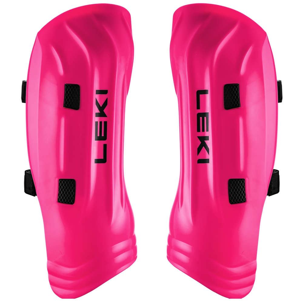 Ochraniacze narciarskie na golenie Leki WorldCup Pro Shin Guard przeznaczone są dla dorosłych zawodników jeżdżących na tyczkach. Ochraniacz cechuje jego kształt, który jest znacznie szerszy chroniąc większą powierzchnię goleni. Zewnętrzna część ochraniaczy wykonana została z wytrzymałego i odpornego na odpryski polipropylenu. Materiał ten cechuje się wysoką odpornością na uderzenia oraz warunki pogodowe.