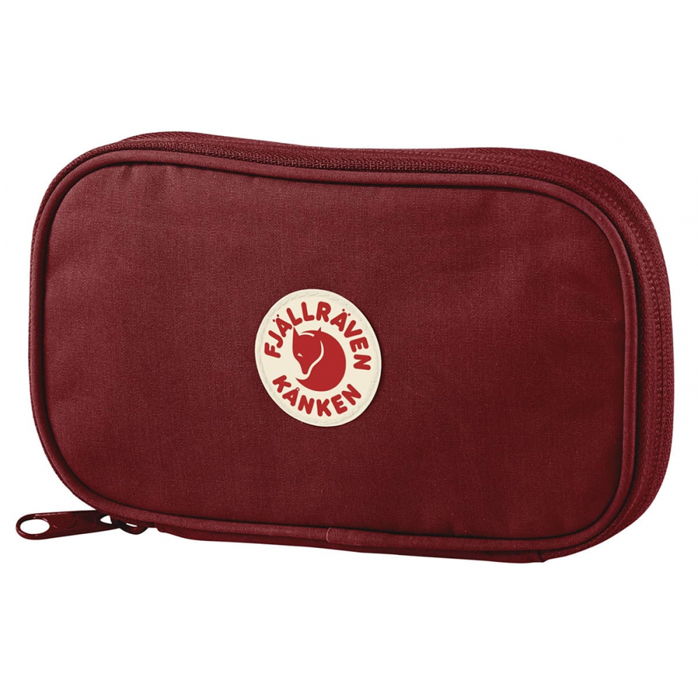 Portfel Fjallraven Kanken Travel Wallet to niewielkich rozmiarów niezbędnik, który zawsze warto mieć przy sobie. Wykonany został z wytrzymałego materiału G-1000 Eco, który stworzono przy użyciu organicznych oraz tych pochodzących z recyklingu tkanin. Cechuje go duża wytrzymałość na uszkodzenia mechaniczne, a także dzięki zaimpregnowaniu odporność na wilgoć. W środku znajdziemy przegródki na karty płatnicze, prawo jazdy bądź dowód osobisty oraz mniejszą kieszonkę na bilon zamykaną na suwak. Portfel posiada także otwartą kieszeń zewnątrzną.