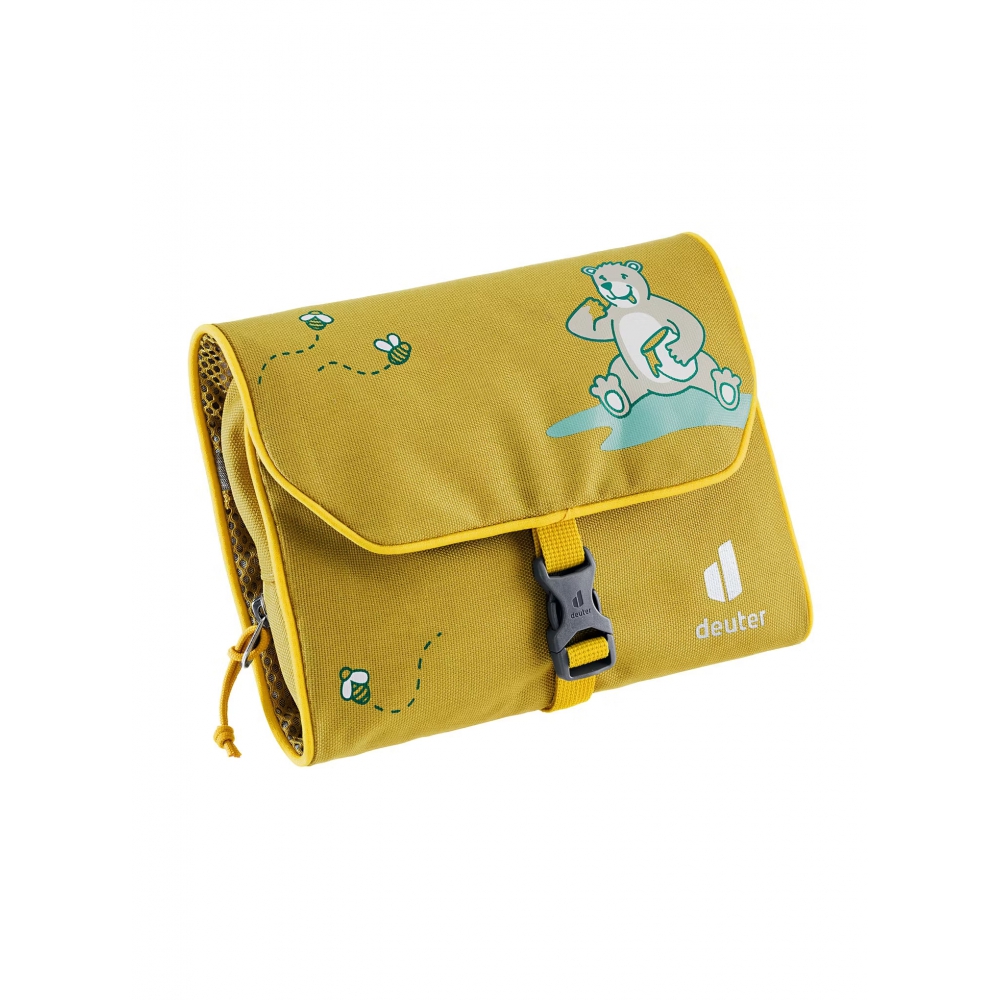 Deuter Wash Bag Kids to wygodna i pojemna kosmetyczka zaprojektowana specjalnie dla dzieci. Idealnie sprawdzi się na wakacjach, szkolnych wyjazdach czy nocowaniu u przyjaciół. Wykonana została z lekkiego, wytrzymałego i wodoodpornego materiału 600D, który powstaje z recyklingu. Dzięki temu jest nie tylko trwała, ale też przyjazna dla środowiska. Głównym elementem kosmetyczki jest pojemna komora, która wewnątrz podzielona została na dwie płaskie kieszonki z siateczki zamykane na suwak. Pozwalają one uporządkować drobne akcesoria, takie jak szczoteczka, pasta czy mydełko. Dodatkowe elastyczne pętle utrzymują wszystko na swoim miejscu, a praktyczny haczyk umożliwia zawieszenie otwartej kosmetyczki na haczyku w łazience lub w namiocie, dzięki temu dziecko ma łatwy dostęp do swoich rzeczy w każdej sytuacji. Całość zamykana jest na praktyczną klamrę, co ułatwia samodzielne korzystanie nawet najmłodszym użytkownikom. Kosmetyczka Deuter Wash Bag Kids jest wolna od szkodliwych związków PFC, co oznacza, że nie zawiera substancji chemicznych mogących szkodzić zdrowiu i naturze. Produkt posiada także certyfikat Fair Wear potwierdzający odpowiedzialną i etyczną produkcję.