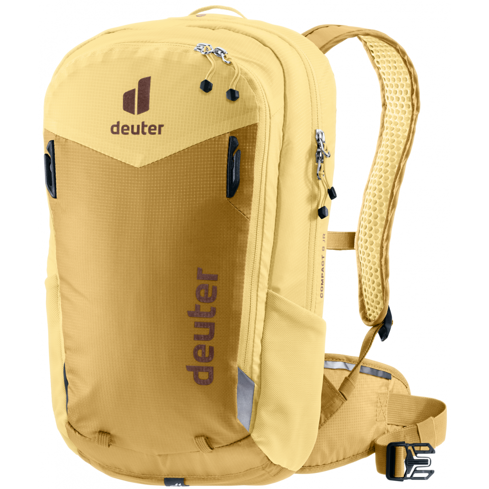 Deuter Compact 8 JR to lekki, a zarazem solidny plecak stworzony z myślą o dzieciach, które z pasją jeżdżą po leśnych trasach i górskich ścieżkach. Wykonano go z wytrzymałego, lekkiego i odpornego na przetarcia poliamidu pochodzącego z recyklingu, spełniającego standard bluesign. Dzięki temu plecak jest zarówno solidny, jak i przyjazny środowisku. Deuter Compact 8 JR oferuje przemyślany układ kieszeni: pojemną komorę główną na przekąski lub odzież, organizer na narzędzia, dwie elastyczne kieszenie boczne oraz przednią kieszeń z zamkiem. Dodatkowo, na froncie posiada mocowania na kask (także full-face), uchwyty na ochraniacze i pompkę rowerową. W zestawie znajdziemy równiez pokrowiec przeciwdeszczowy, który skutecznie chroni zawartość przed deszczem i wilgocią.