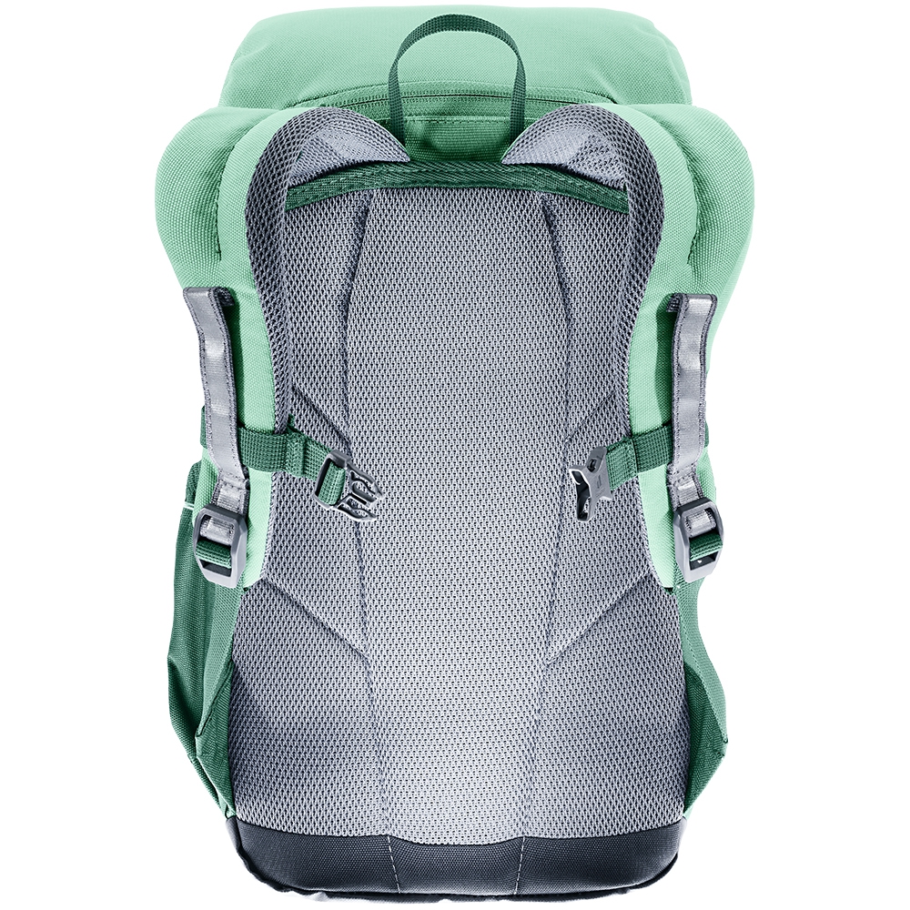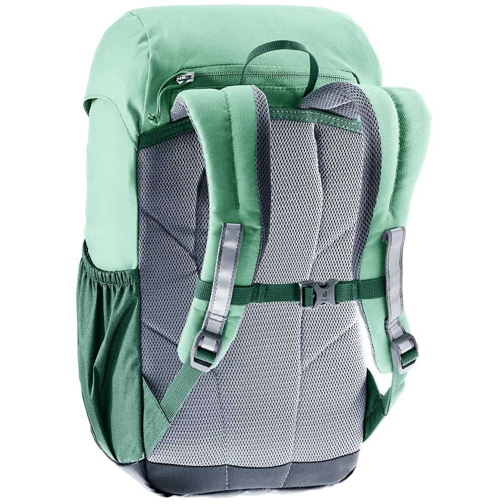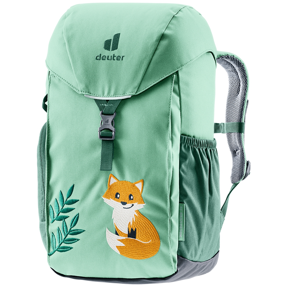 Deuter Waldfuchs 14 to plecak stworzony z myślą o przedszkolakach i dzieciach uczęszczających do przedszkoli i szkół. Wykonany jest w 100% z materiału pochodzącego z recyklingu, a wszystkie jego elementy są przyjazne dla środowiska. Plecak ma twardą, odporną na przetarcia konstrukcję i zapewnia dużo miejsca na wszystkie dziecięce rzeczy. Ergonomiczny, wyściełany tylni panel i odpowiednie rozłożenie ciężaru sprawiają, że maluchy mogą nosić go wygodnie, nawet podczas biegania i zabawy. Plecak wyposażono w miękkie, ergonomiczne szelki oraz regulowany pas piersiowy, które dopasowują się do małego ciała użytkownika. Dobre przewietrzanie pleców zapobiega nadmiernemu poceniu podczas ruchu. Waldfuchs 14 ma liczne kieszenie: główną zamykaną na sznurek i klapę, przednią na drobiazgi oraz boczne elastyczne kieszonki. Dodatkowo znajdziemy tu odpinaną matę do siedzenia, wewnętrzny identyfikator, przegrodkę na mokre rzeczy, uchwyty do przyczepienia drobiazgów oraz odblaskowe elementy zwiększające bezpieczeństwo. Plecak Deuter Waldfuchs 14 ma też zdejmowaną pokrowiec przeciwdeszczowy i wodoodporne dno.