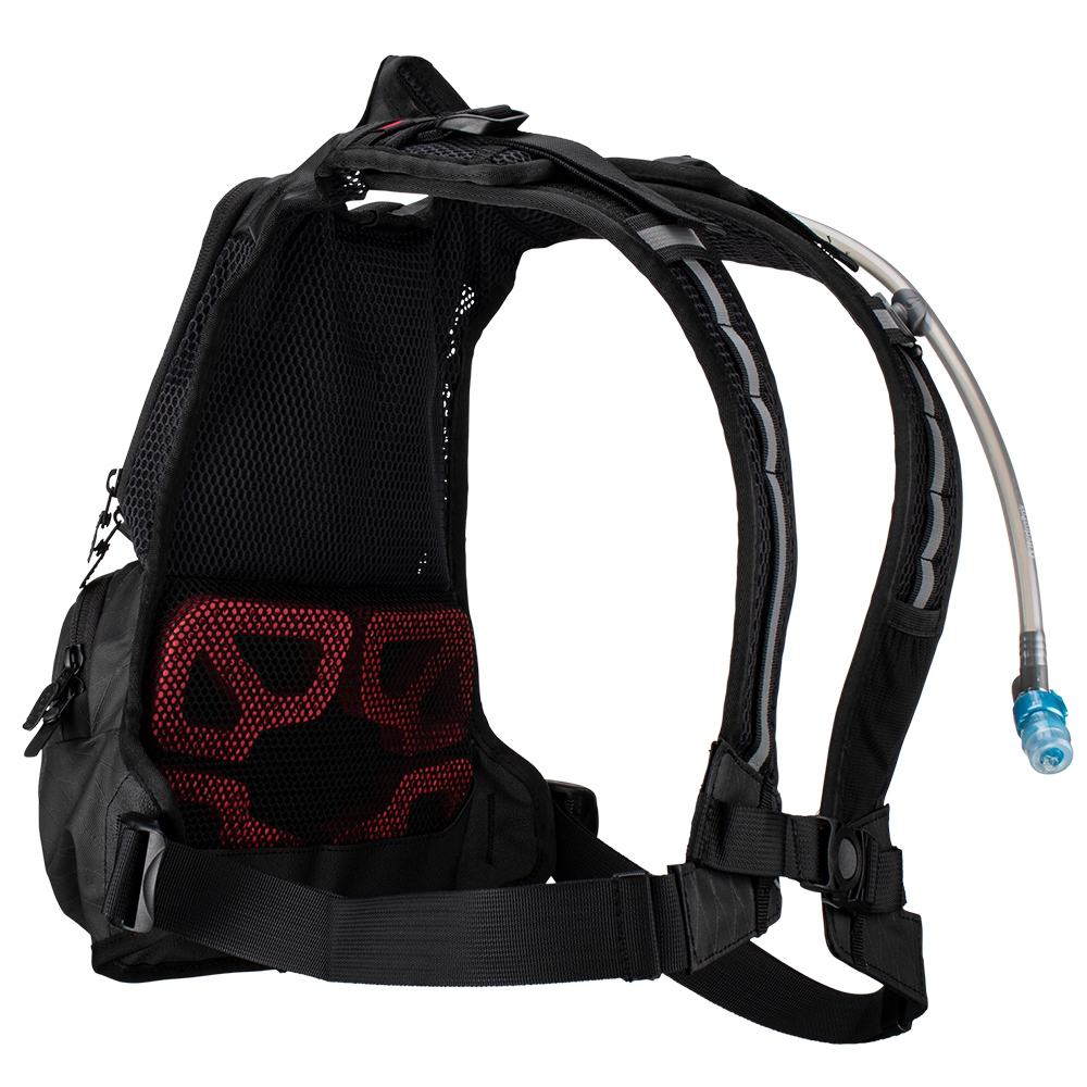 Plecak Leatt Hydration MTB Enduro Race 1,5L wyposażony jest w praktyczny system hydracyjny, którego centralnym elementem jest bukłak o pojemności 1,5 litra. System nawadniający i jego innowacyjny ustnik wykonany w technologii auto shut-off bite valve zapobiega przypadkowemu wyciekowi płynu i pozwala na wygodne korzystanie z systemu bez użycia rąk. Rurka może być prowadzona zarówno z lewej, jak i prawej strony dzięki magnetycznemu uchwytowi, który zapewnia szybki dostęp do ustnika w każdej sytuacji. Konstrukcja plecaka umożliwia również zastosowanie dodatkowego bukłaka o pojemności 2 litrów, który zmieści się w głównej komorze, co pozwala wydłużyć czas jazdy bez konieczności uzupełniania płynów.