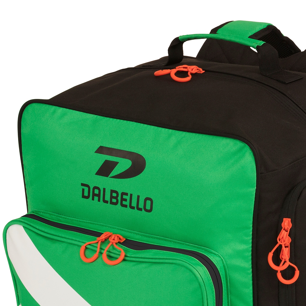 Plecak narciarski Dalbello Race Boot & Helmet Backpack to idealny wybór dla juniora wyjeżdżającego na stok bądź obóz narciarski. Główna pojemna komora otwierana jest od góry, z łatwością można schować w niej kask o dowolnym rozmiarze. Komora posiada sztywną przedziałkę umożliwiając dowolne ułożenie przedmiotów bez obawy o ich zarysowanie. Po boku plecaka znajduje się odizolowana, wykonana z w pełni wodoodpornego tworzywa kieszeń na buty. Kieszeń jest wentylowana oraz wyłożona odpornym na uszkodzenia oraz wodę brezentem. Przednia kieszeń przeznaczona jest na schowanie akcesoriów narciarskich, np. rękawiczek czy ochraniaczy. Wygodne uchwyty zamków pozwalają na komfortowe otwieranie nawet w rękawicach narciarskich. Wymiary plecaka to 47 x 39 x 30 cm a jego pojemność to 56 litrów.