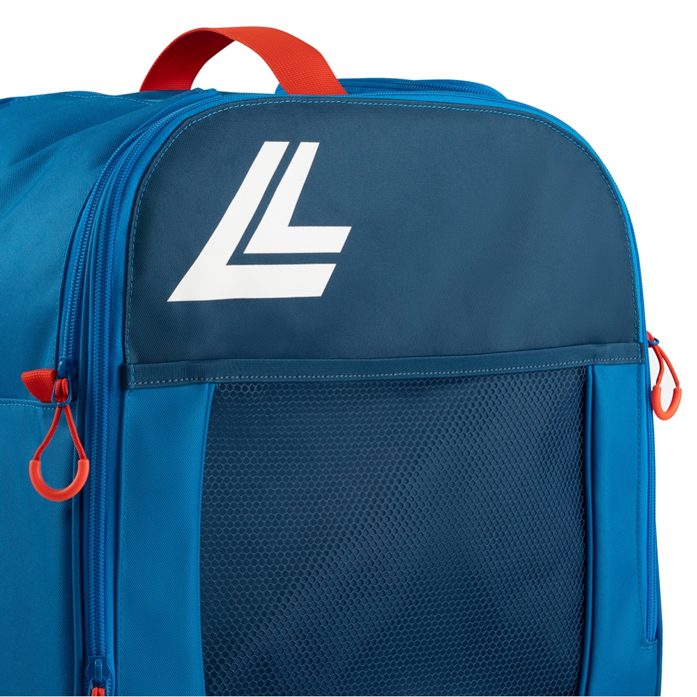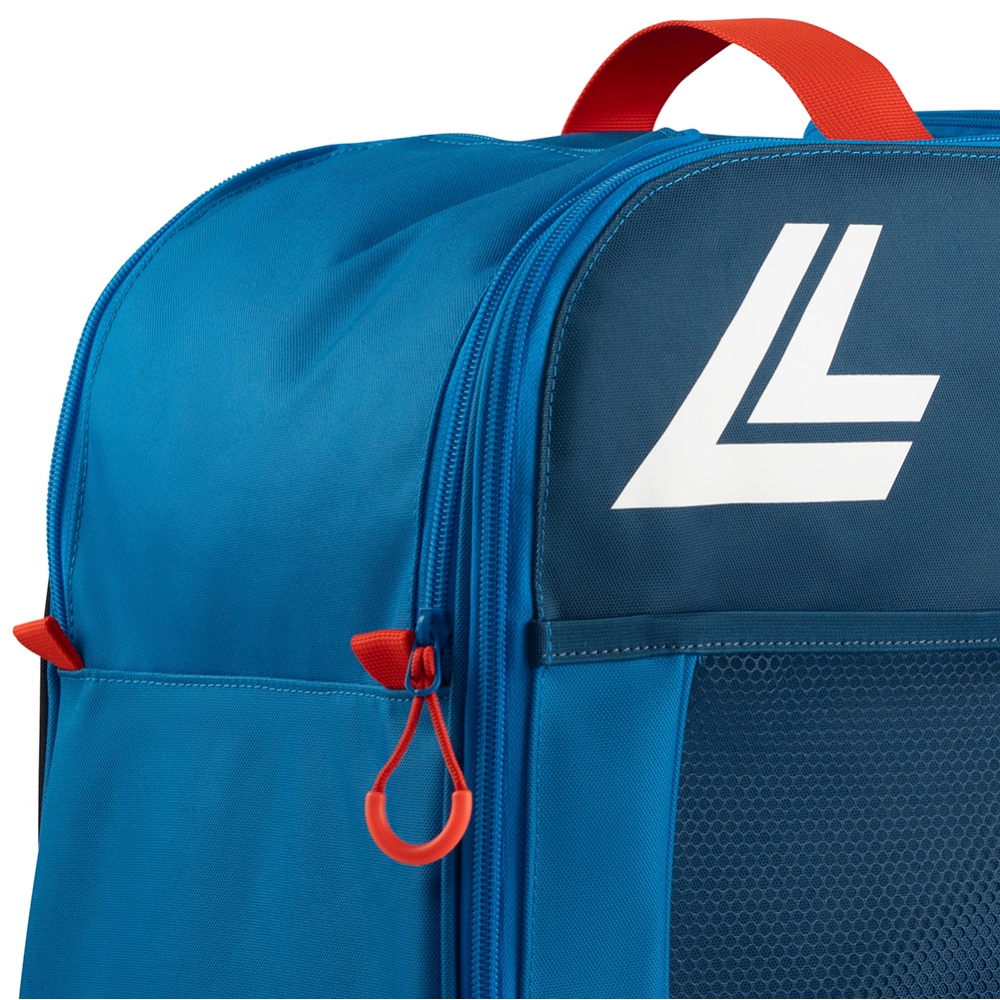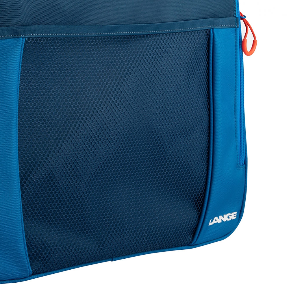Plecak narciarski Lange Pro Boot Bag wykonany jest z bardzo wytrzymałego materiału jakim jest poliester600D. Pokryty on jest również specjalną powłoką poliuretanową dzięki czemu jest całkowicie wodoodporny. Plecak posiada dużą, główną komorę otwieraną od przodu, do której można schować buty narciarskie. Zamek na jej całej długości umożliwia wygodne ich spakowanie w każdych warunkach. U góry plecaka znajdują się dwie mniejsze kieszenie, które umożliwiają spakowanie pozostałych elementów stroju narciarskiego jak np. kominiarka, rękawiczki bądź czapka. Wnętrze plecaka oraz każda z kieszeni wyścielone jest wodoodporną tkaniną, która izoluje od siebie wilgotne od śniegu buty narciarskie od pozostałych elementów narciarskiej garderoby. Plecak posiada także siateczkową kieszeń na przedzie zmieści się termos z ciepłym napojem oraz parę innych przydatnych gadżetów. Całkowita pojemność plecaka narciarskiego Lange Pro Boot Bag to 45L. Wymiary plecaka to 38 x 24 x 40 cm.
